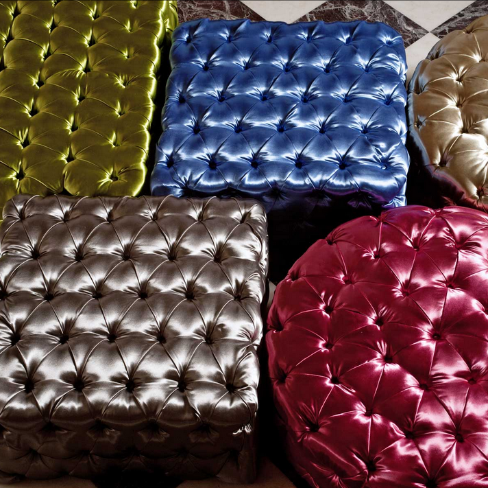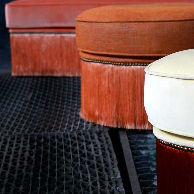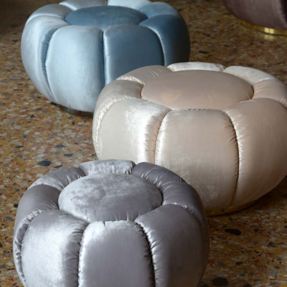 Runda eller fyrkantiga i olika dimensioner, flera höjder, på ben, fötter eller med sockel. Knappar, sömmar, keder, fransar, fisklika eller blommande, moderna, klassiska, enkla eller påkostade – du väljer!