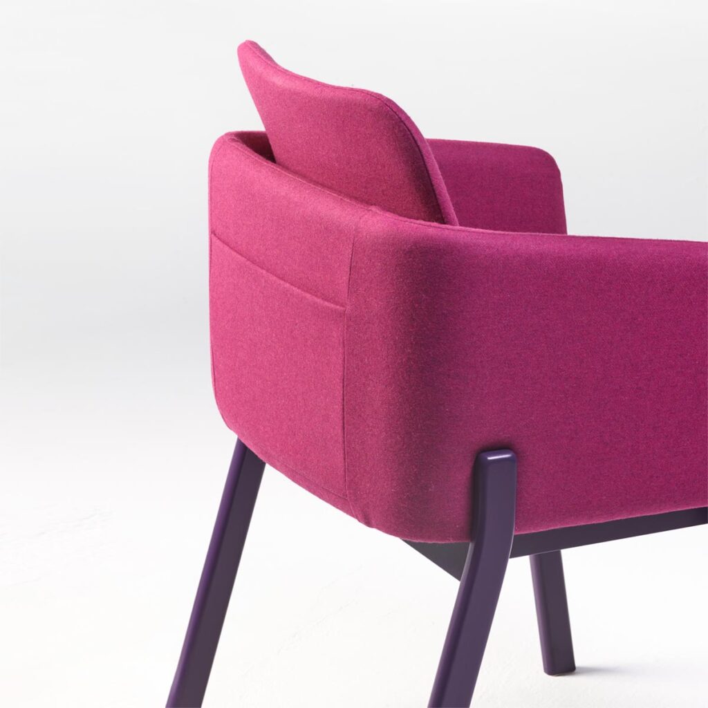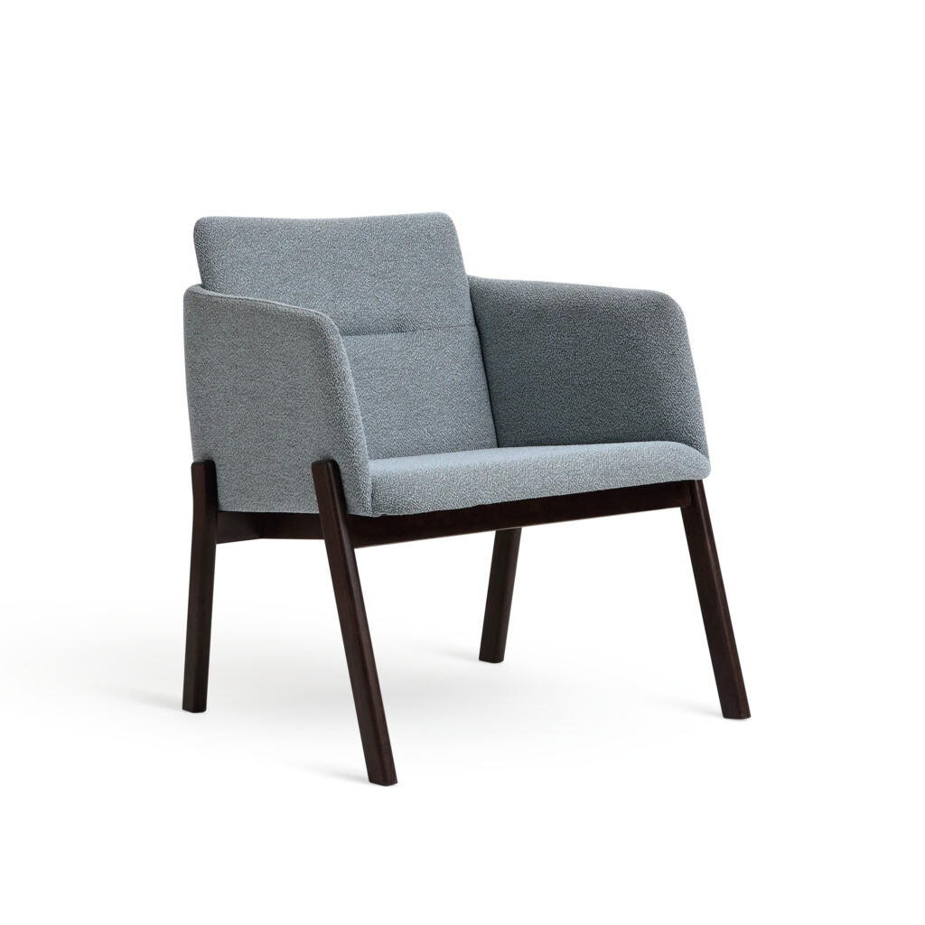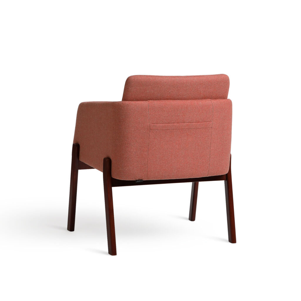 NOTE fåtölj är byggd enligt samma principer som karmstolen, men märkbart bredare. Dess öppna form och bredare sits ger den en mer avslappnad, loungeliknande karaktär med lägre sitthöjd. Fåtöljen passar perfekt i hotellobbyer, pensionat, hotellrum samt relaxzoner – både på kontor och i bostäder. Liksom de andra karmstolarna i kollektionen har den en diskret fack på ryggen för en meny, bok eller tidskrift.