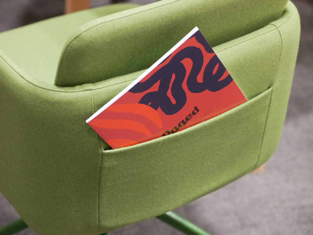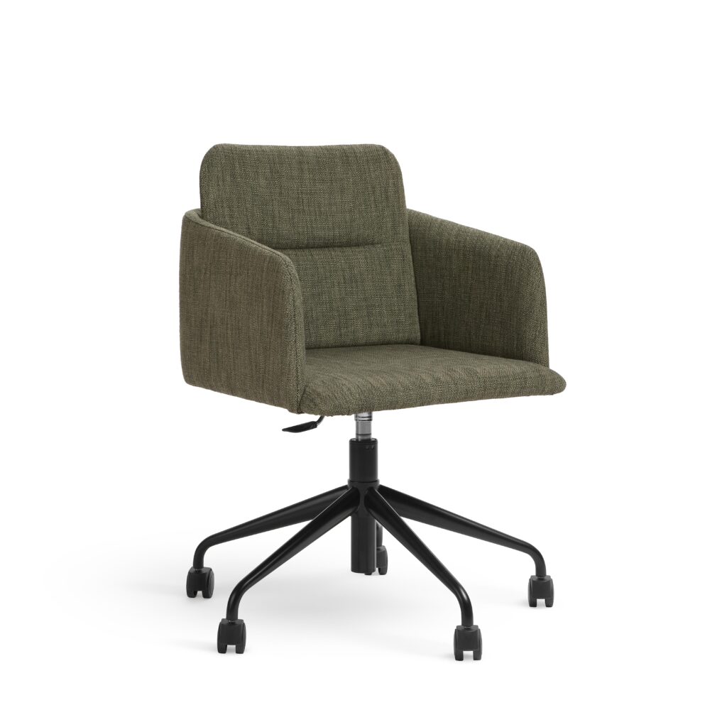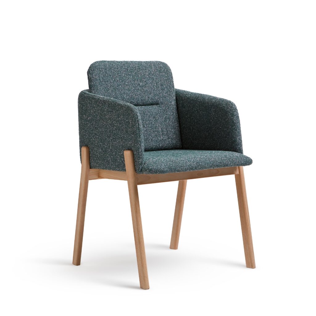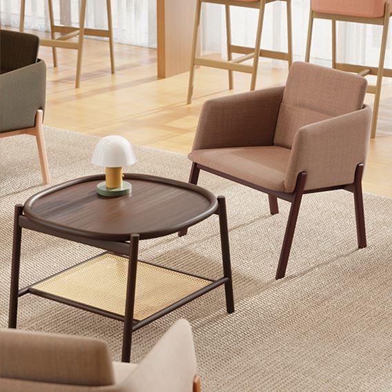 NOTE fåtölj är byggd enligt samma principer som karmstolen, men märkbart bredare. Dess öppna form och bredare sits ger den en mer avslappnad, loungeliknande karaktär med lägre sitthöjd. Fåtöljen passar perfekt i hotellobbyer, pensionat, hotellrum samt relaxzoner – både på kontor och i bostäder. Liksom de andra karmstolarna i kollektionen har den en diskret fack på ryggen för en meny, bok eller tidskrift.