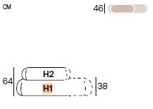 Modul H1: rak ryggmodul i metervara, nedre del basmodul. Ryggmodulen består av två delar, bas & ryggstöd. Ryggstödet kan vara i samma längd som basen eller kortare, kan även delas upp i flera delar. Om man gör ryggstödet kortare än basen så kan basen användas som sittdel (h.38cm).