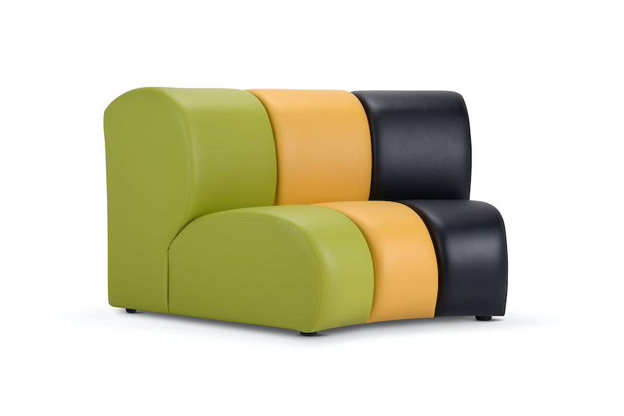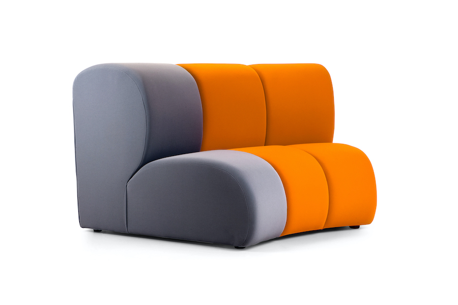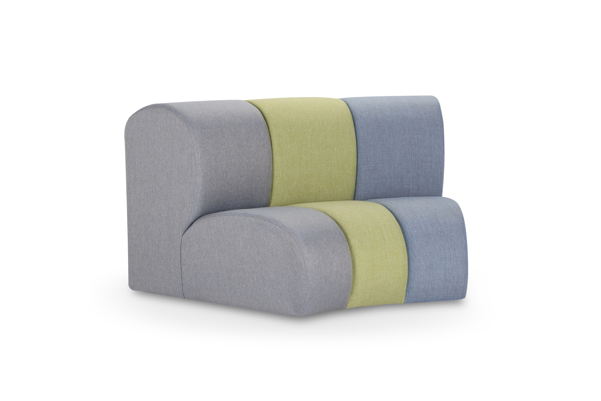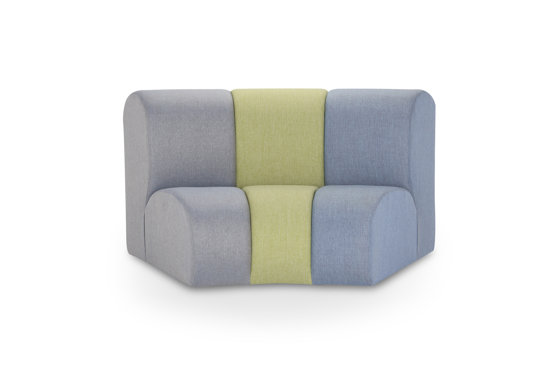 NIBBLER modulsoffa. Modulärt sittsystem – linjärt, konkavt eller konvext – utformat för offentliga miljöer. NIBBLER anpassar sig till sitt utrymme med anpassningsbara moduler, flerfärgskombinationer och integrerade laddningspunkter som tillval.