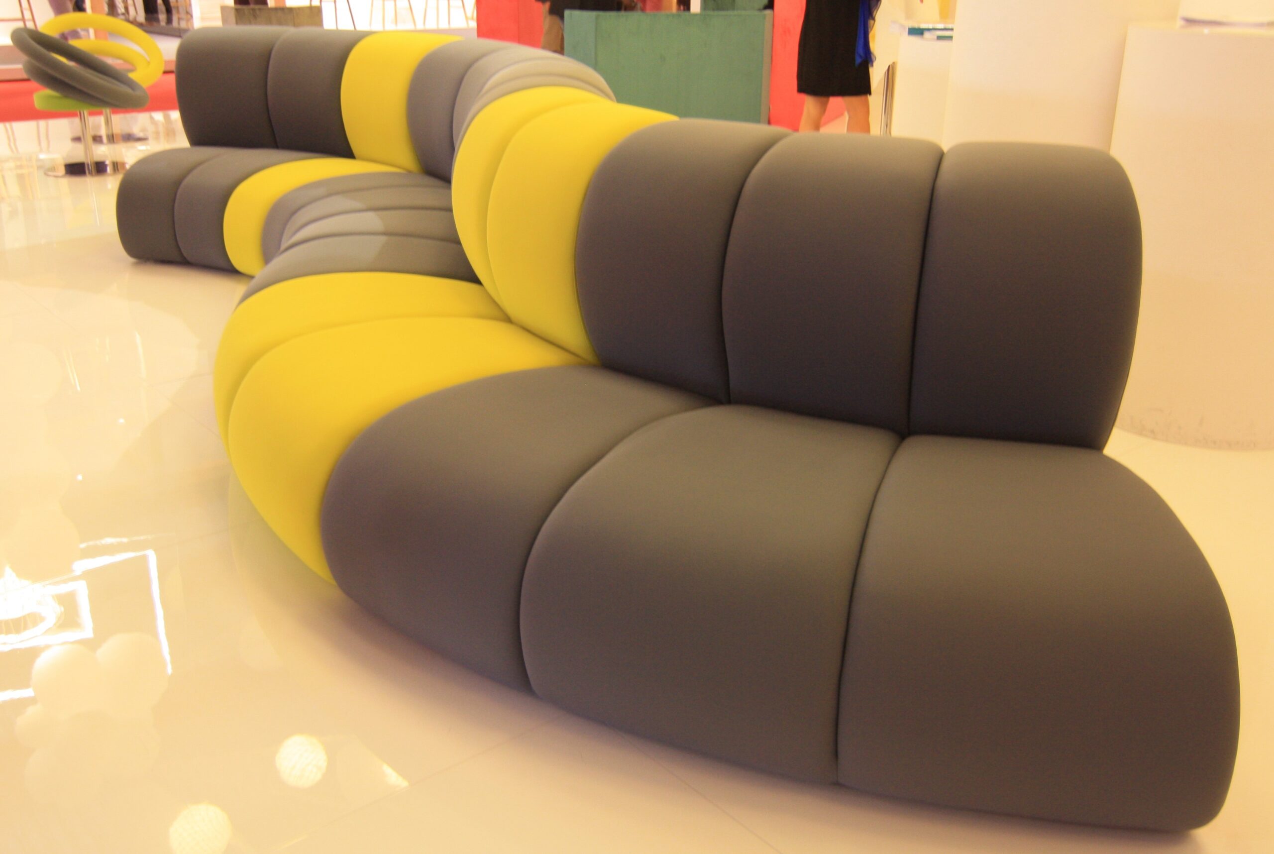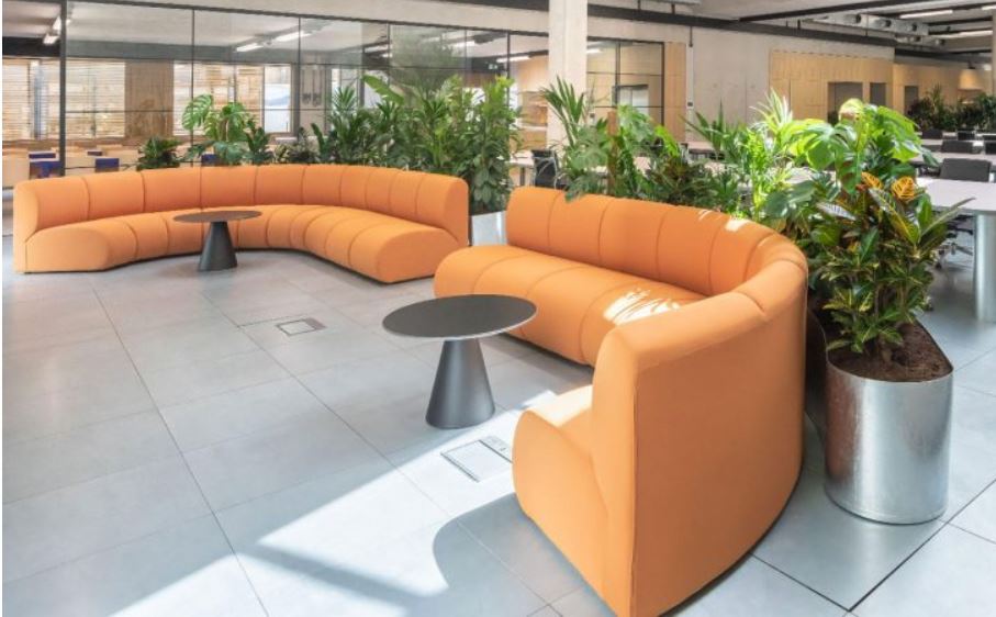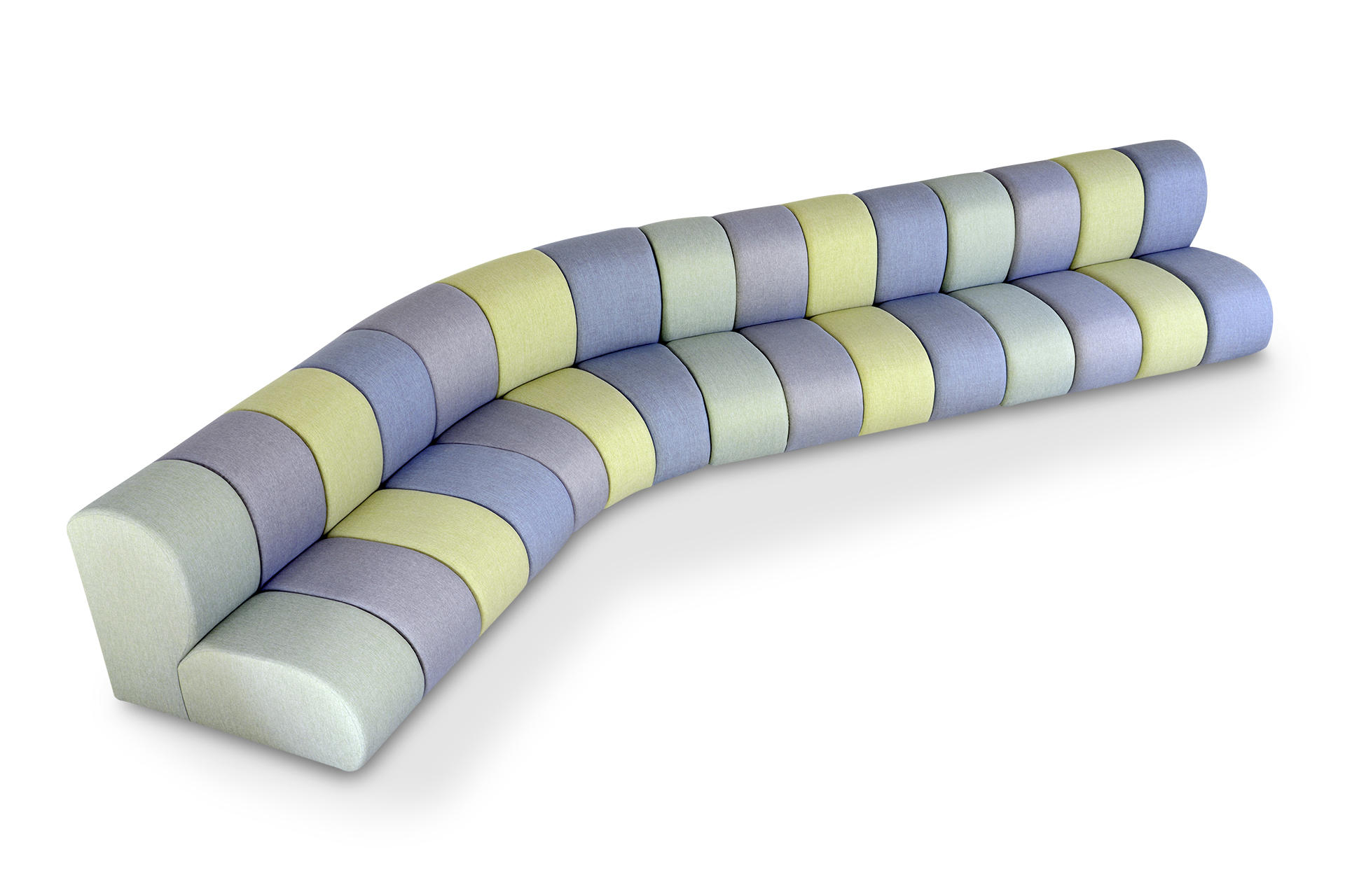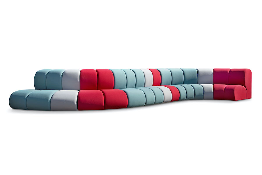 NIBBLER modulsoffa. Modulärt sittsystem – linjärt, konkavt eller konvext – utformat för offentliga miljöer. NIBBLER anpassar sig till sitt utrymme med anpassningsbara moduler, flerfärgskombinationer och integrerade laddningspunkter som tillval.