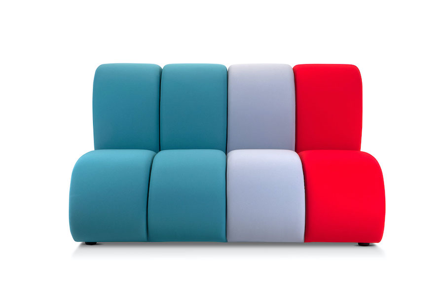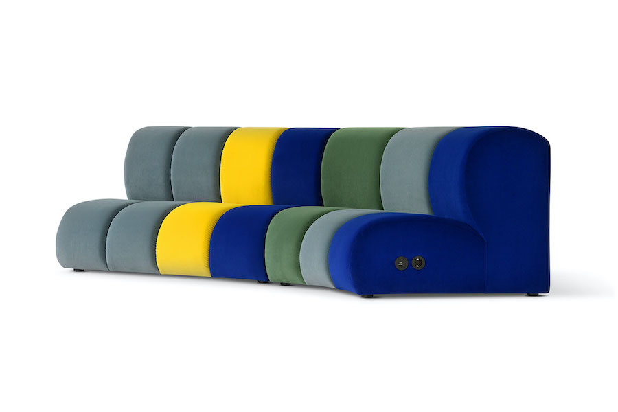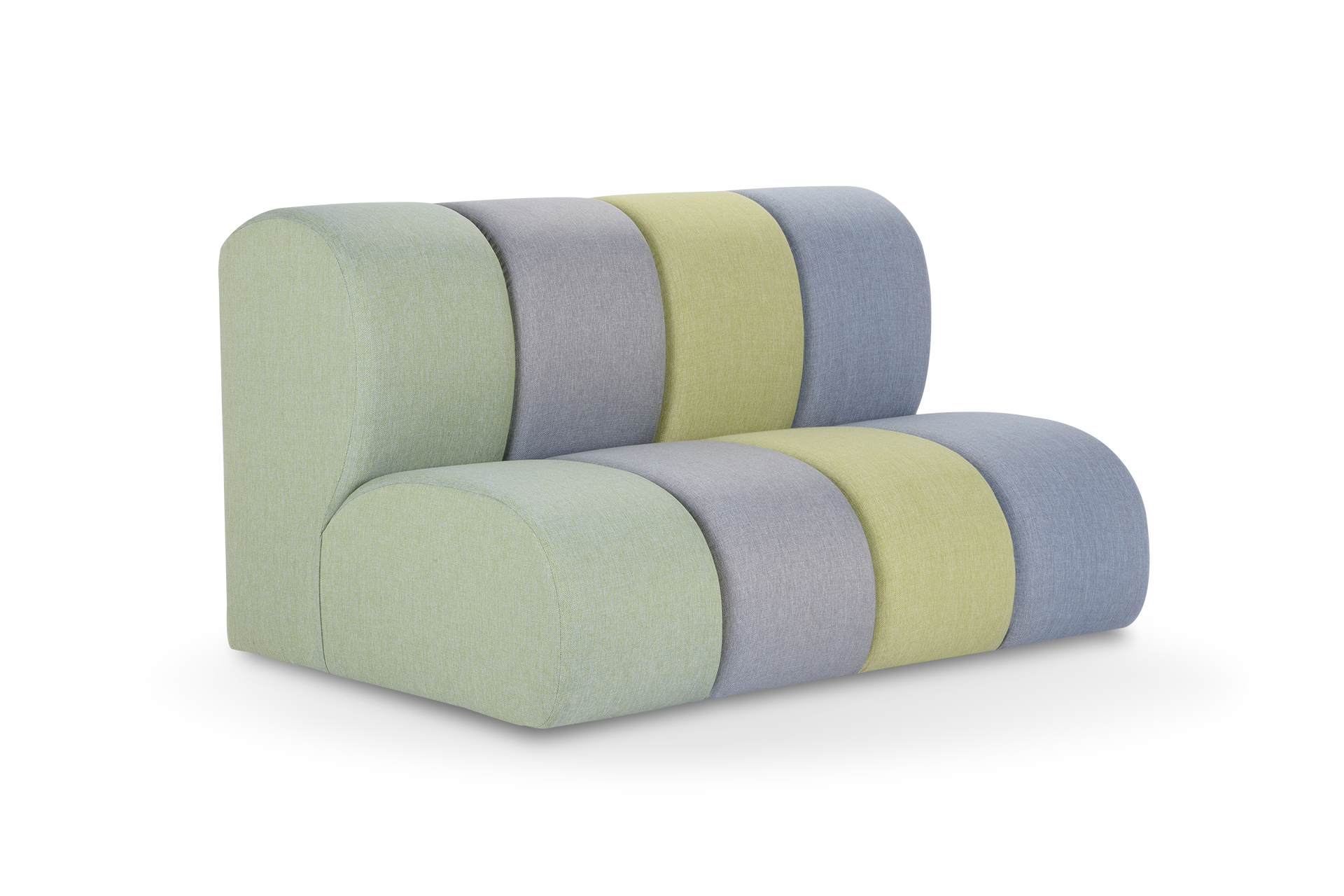 NIBBLER modulsoffa. Modulärt sittsystem – linjärt, konkavt eller konvext – utformat för offentliga miljöer. NIBBLER anpassar sig till sitt utrymme med anpassningsbara moduler, flerfärgskombinationer och integrerade laddningspunkter som tillval.