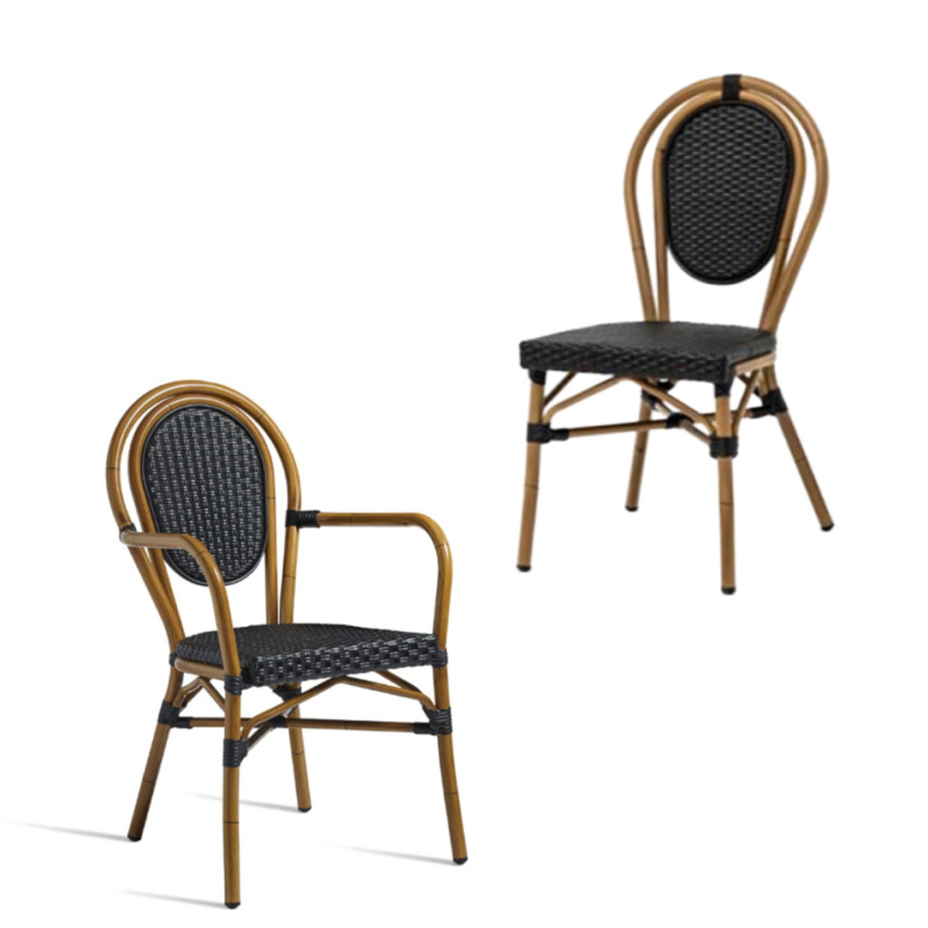 Carcassone bordsstativ i rottinglackad aluminium. Trebent. Höjd 73cm.