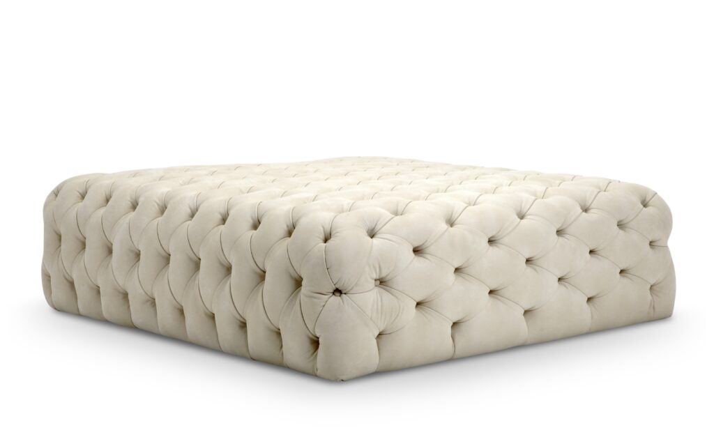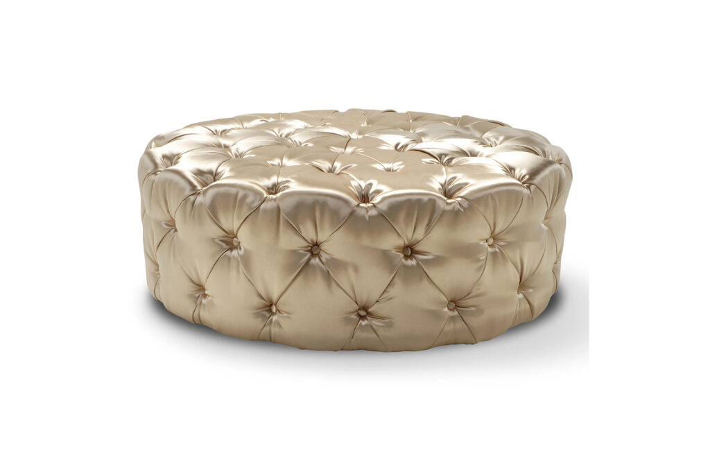 Djuphäftad puff 125x75cm, svarvade guldskodda med hjul