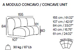 NIBBLER modulsoffa. Inre standardkurva 155cm.