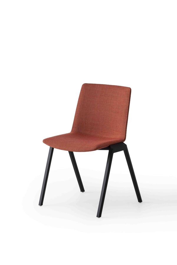 Stol stapelbar rakt vertikal! Helklätt sittskal. Ben i metallförstärkt tecnopolymer. Plastfot med inbyggt stapelskydd för att skydda klädseln.