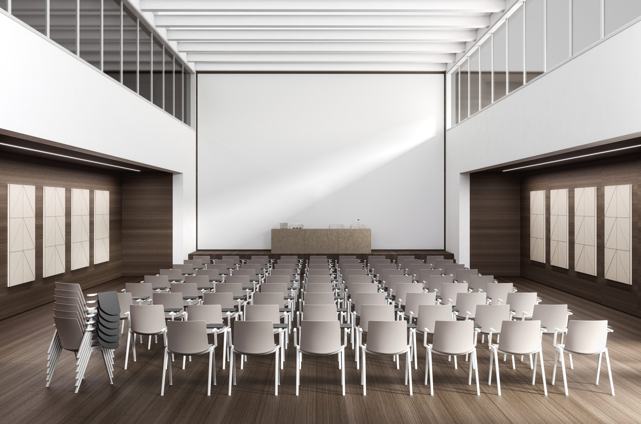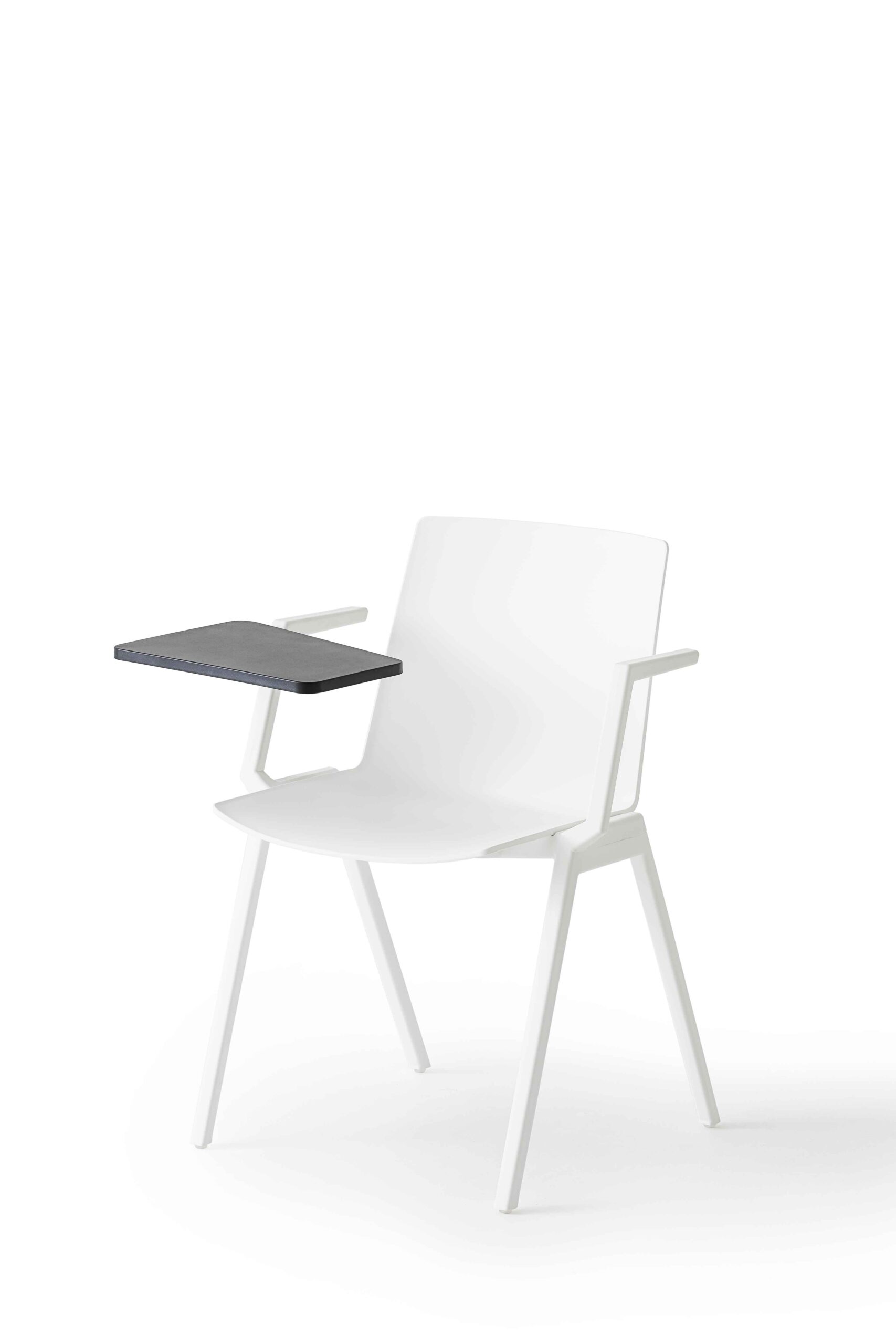 Karmstol, stapelbar i oändlighet, rakt vertikal! Flera färger. Ben i metallförstärkt tecnopolymer, färgmatchad med sittskal. Karmhöjd 67,5cm. Skrivskiva antipanik.