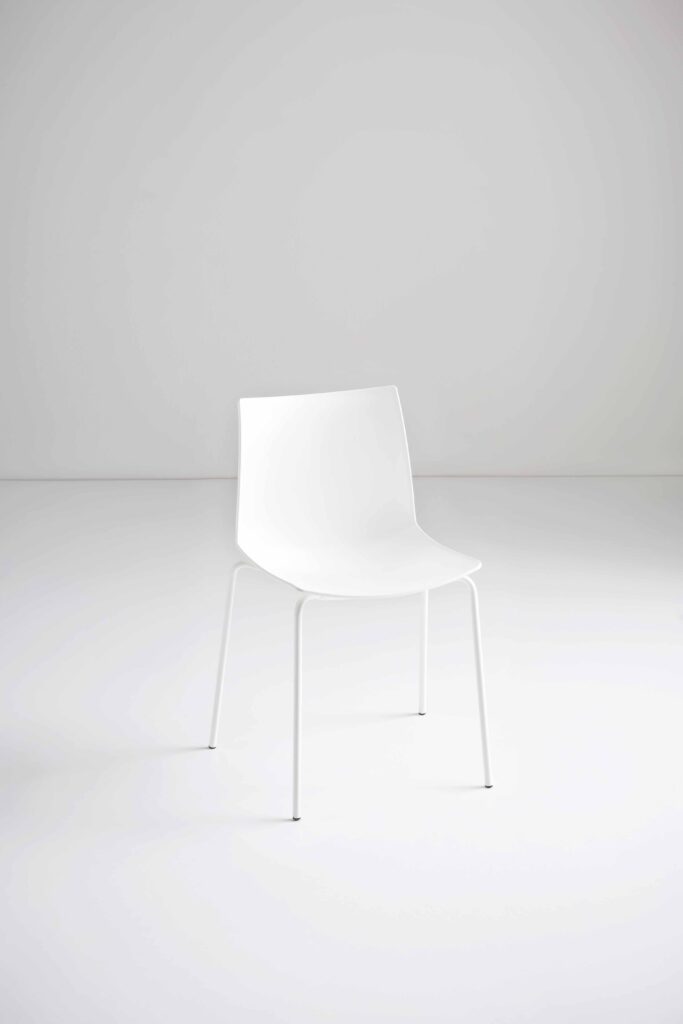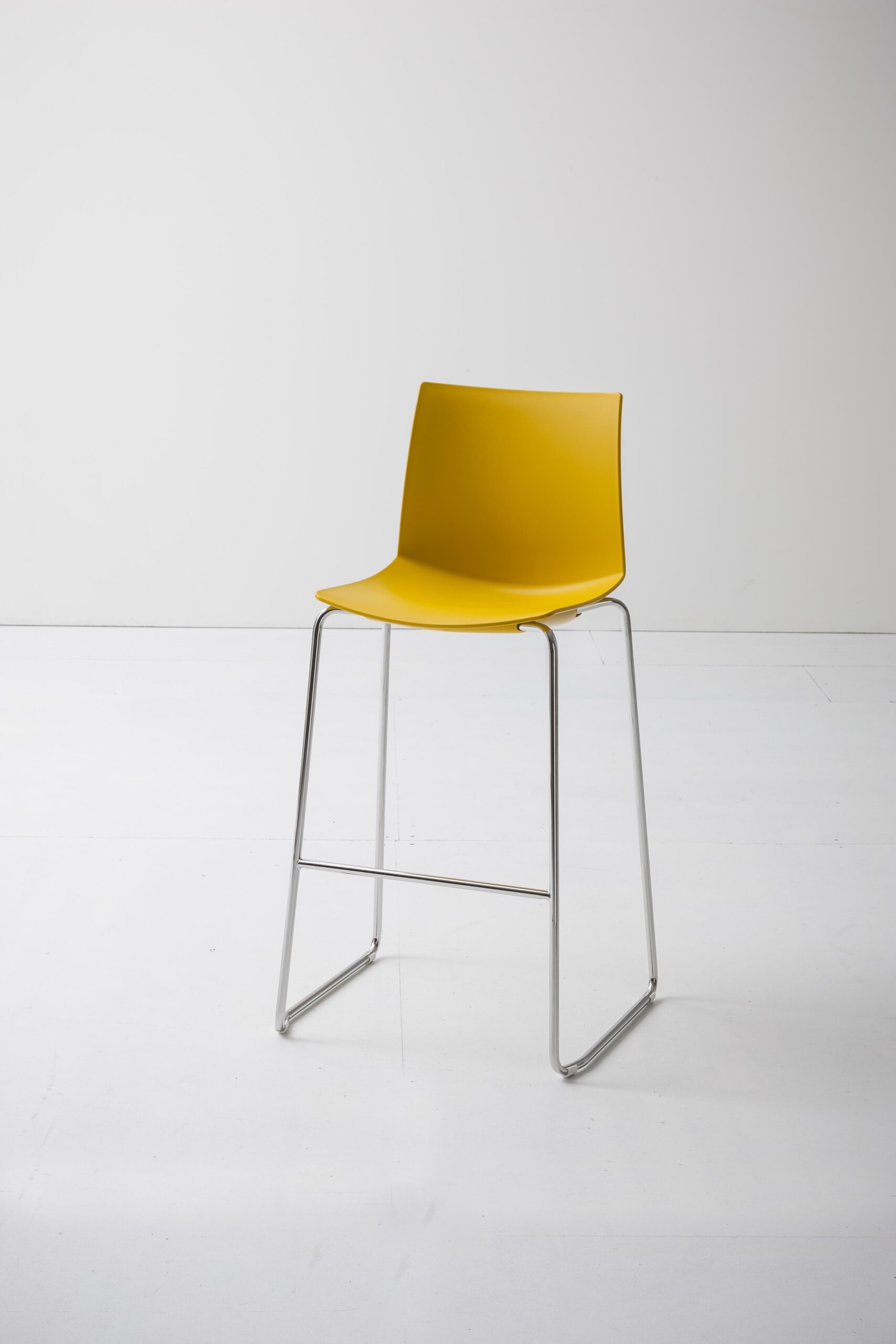 Barstol på medar i krom, svart eller vitt. Sitthöjd 66 eller 76cm. Sittskal i tecnopolymer.
