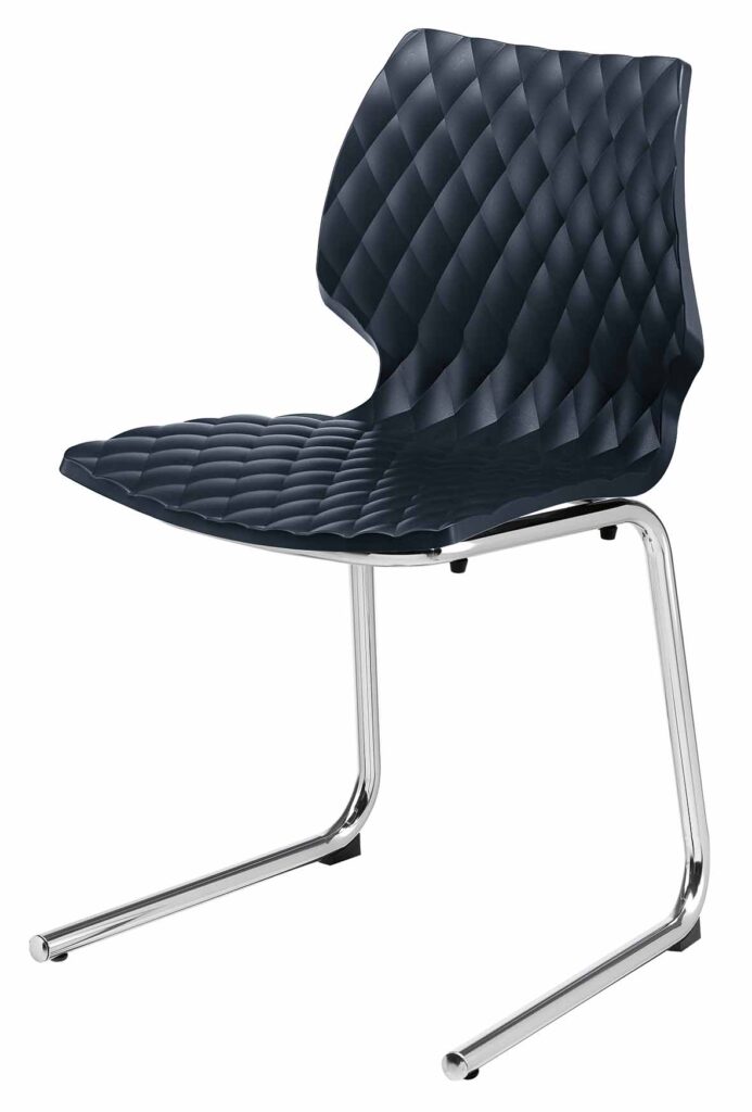 Stol UNI på stålmedar i lack eller krom, sittskal i flera färger.