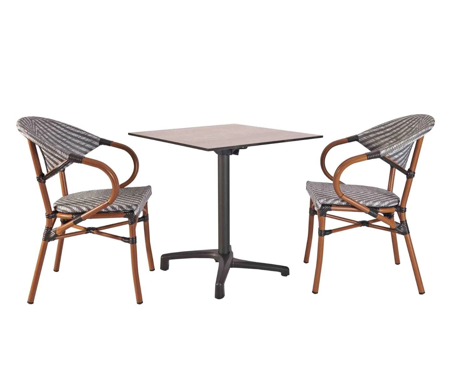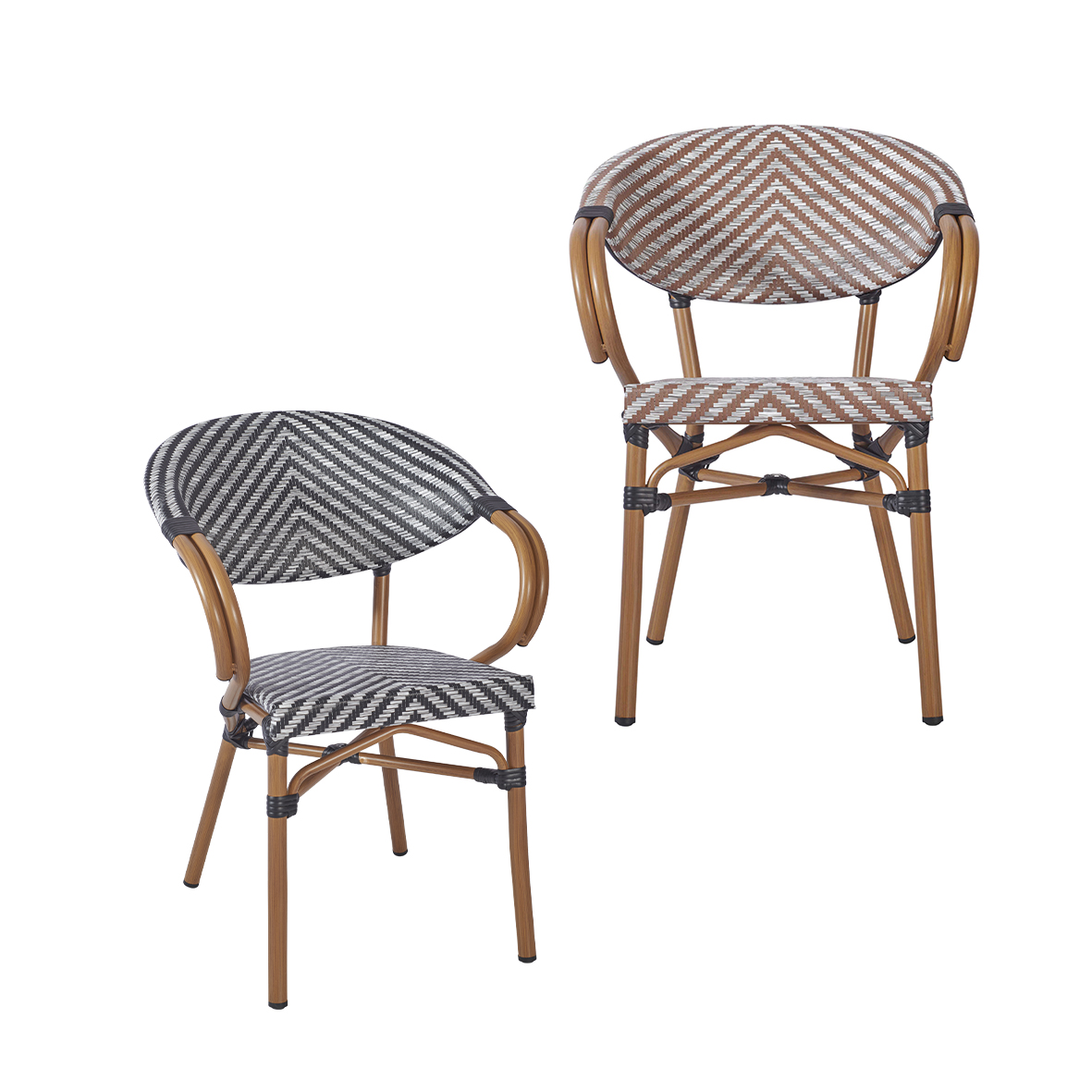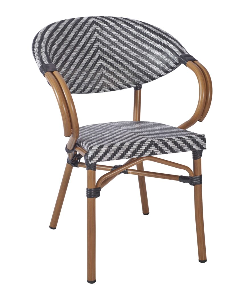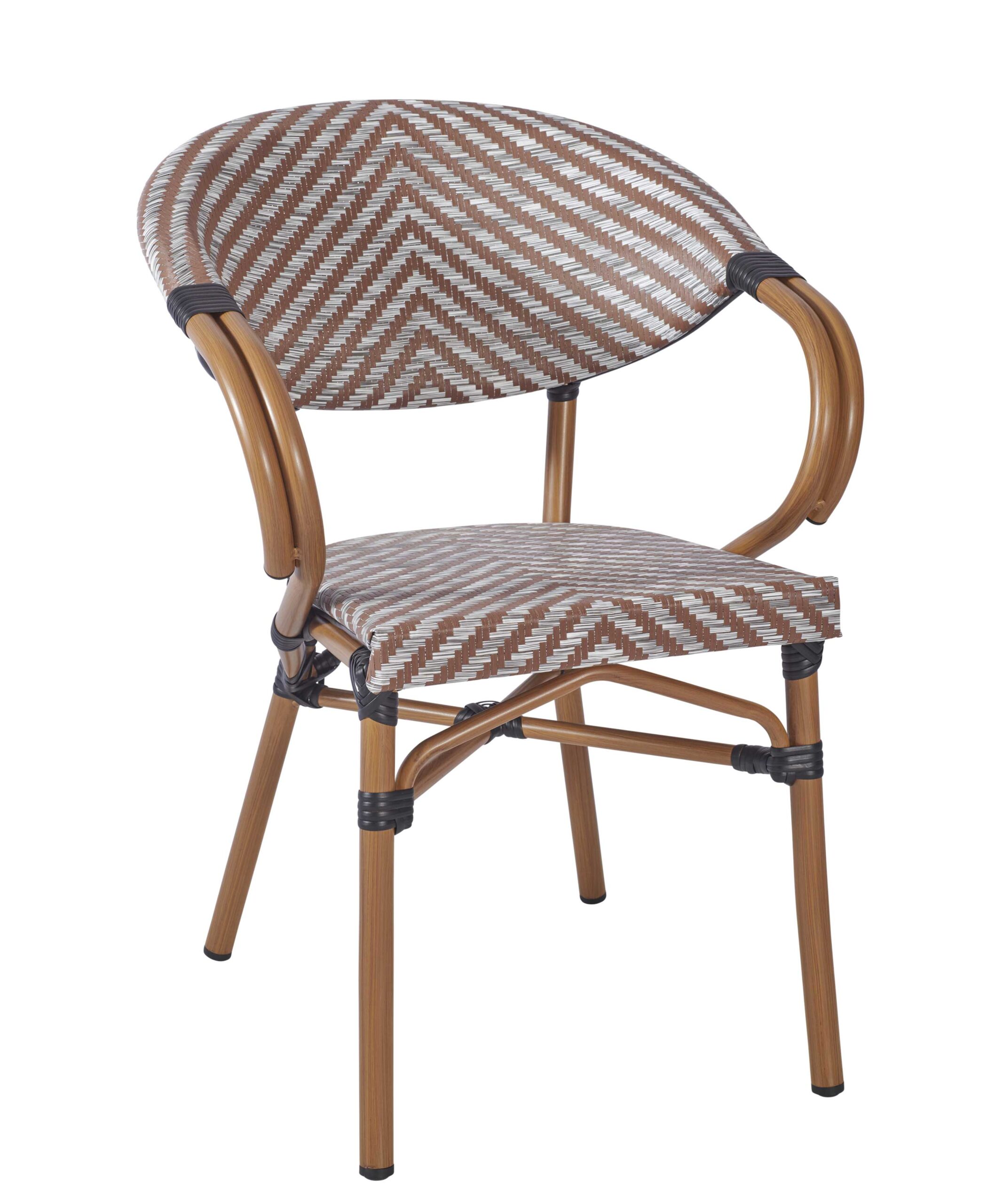 Montpellier karmstol. Stomme i rottinglackad aluminium. Flätning i beige alternativt antracit.