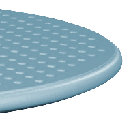 Bord i polymer d.60,5cm, h.40 & 76,5cm. Perforerad bordsskiva. Levereras med två pelare, för höjd 40 och höjd 76,5 cm.