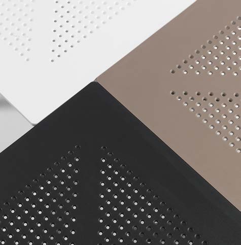 Bord 80*80cm, h.75cm. Perforerad bordsskiva, runda hål typ ”Bora”.