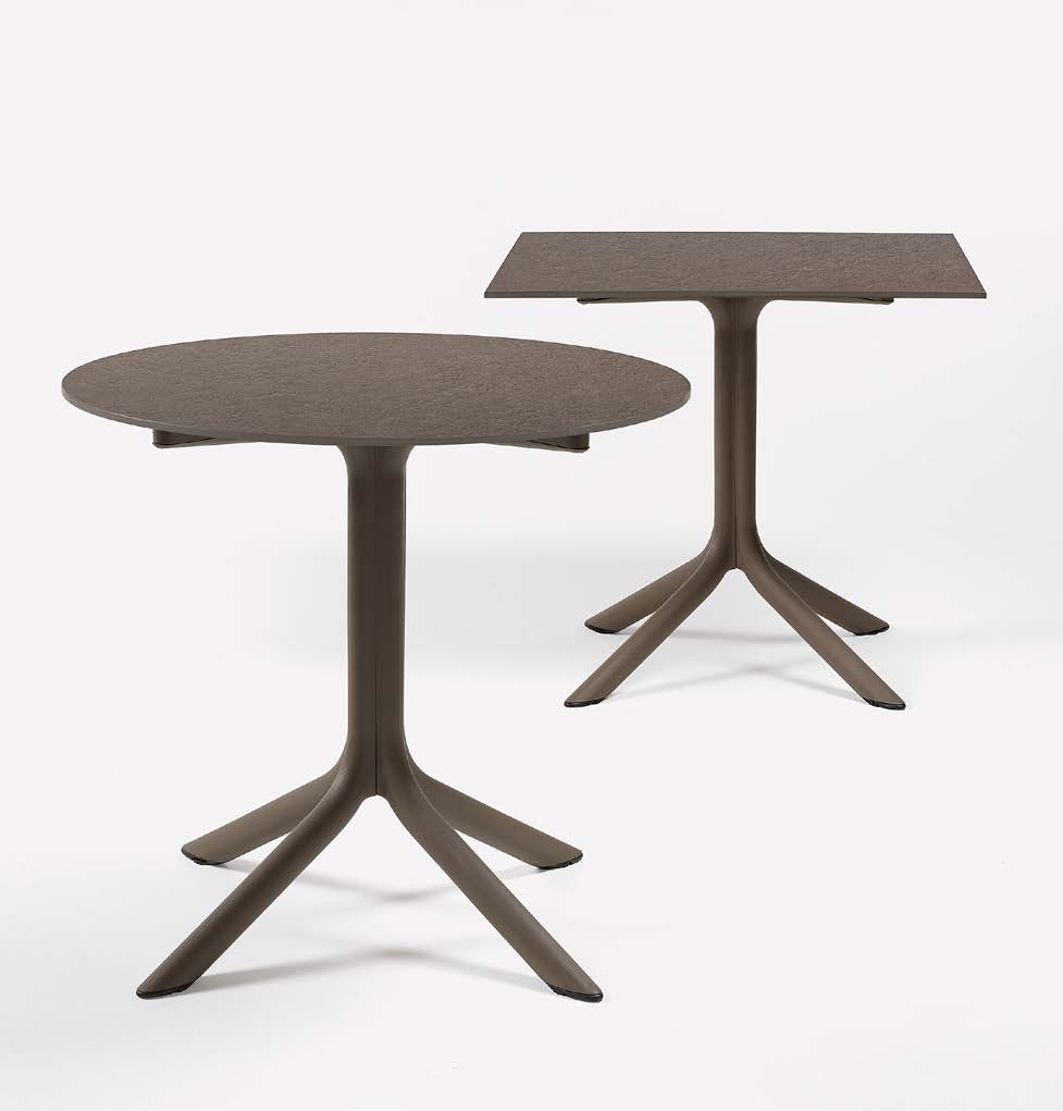 Bordsstativ i polypropen och fiberglas, h.75cm. Inklusive skiva i kompaktlaminat 70*70, 80*80 eller d.80cm.