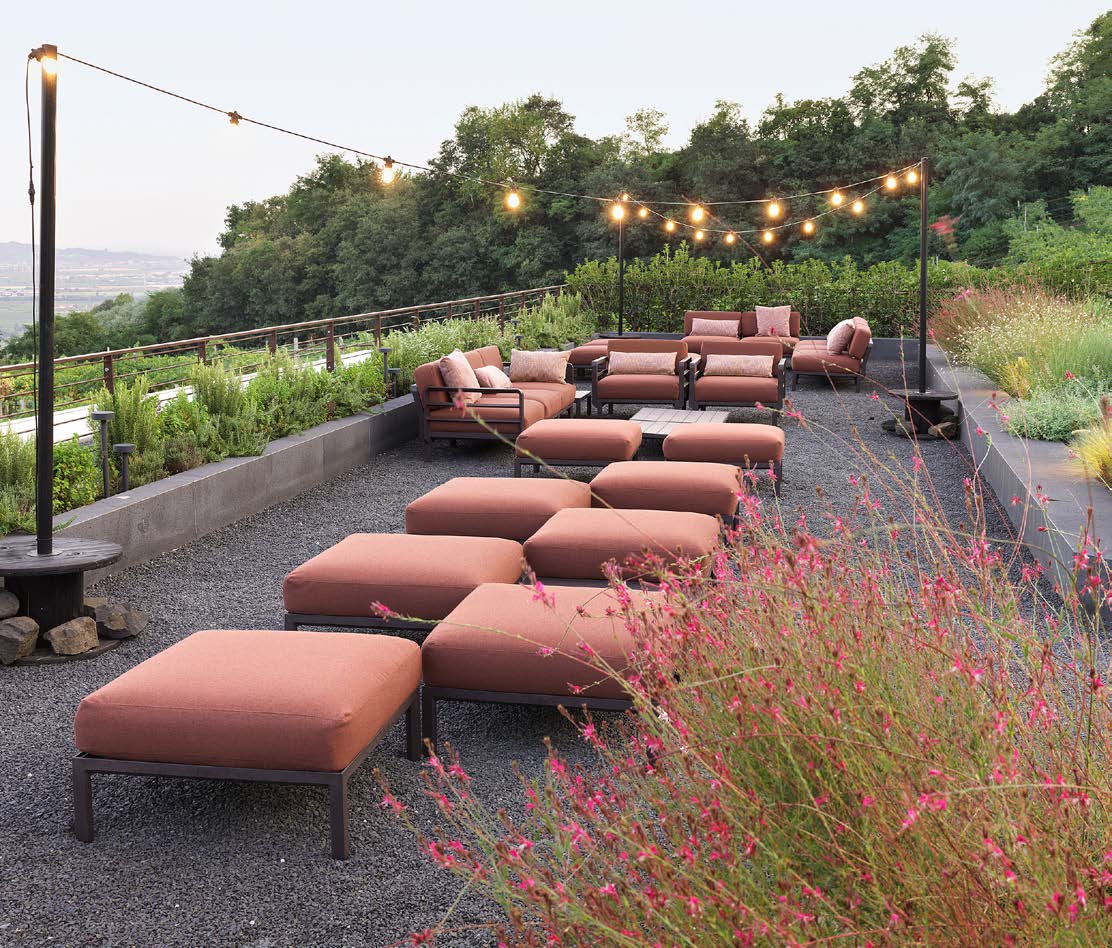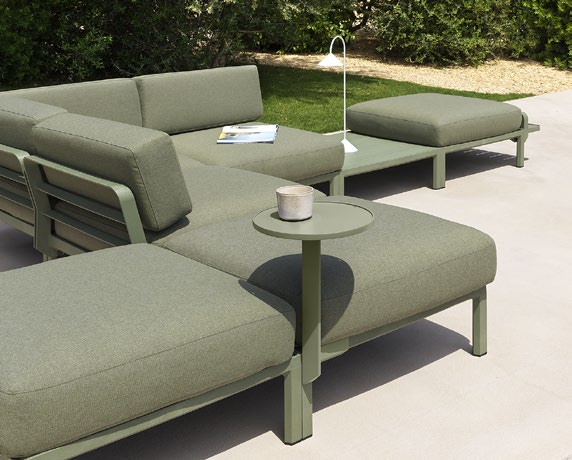 Består av flera delar som kan kombineras i oändlighet. Stommen tillverkas av återvunnnet material (fiberglas och polypropen) som kräver minimalt med underhåll. Avtagbar klädsel i Sunbrella-tyg med 50% återvunnen akryl.