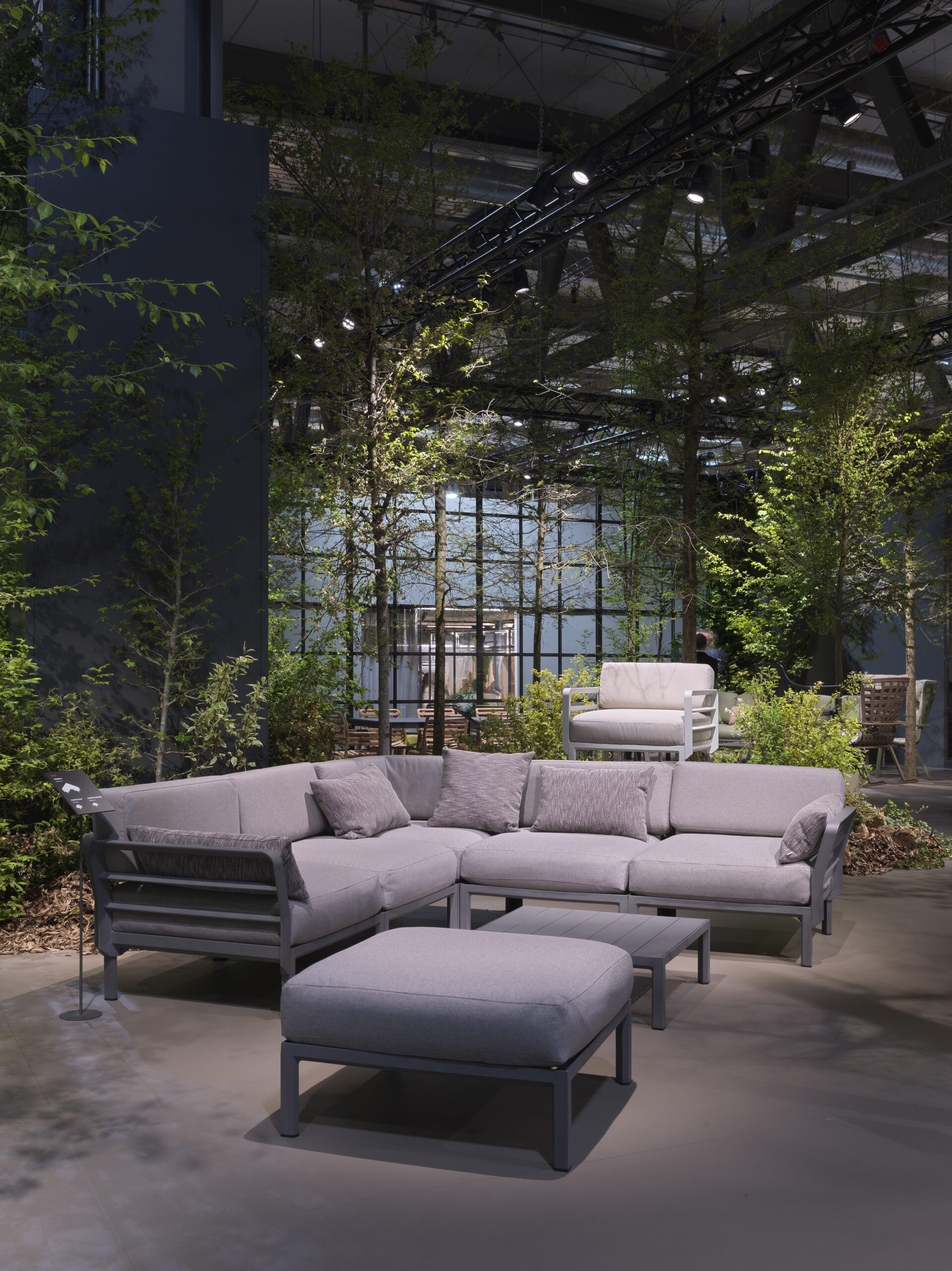 Består av flera delar som kan kombineras i oändlighet. Stommen tillverkas av återvunnnet material (fiberglas och polypropen) som kräver minimalt med underhåll. Avtagbar klädsel i Sunbrella-tyg med 50% återvunnen akryl.