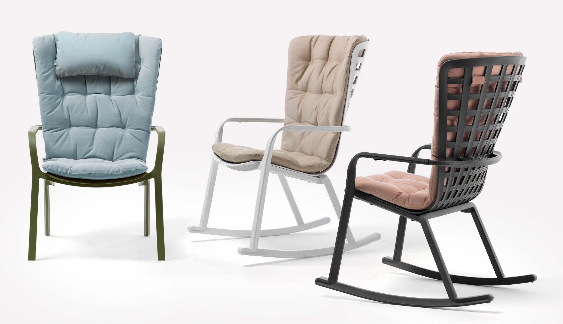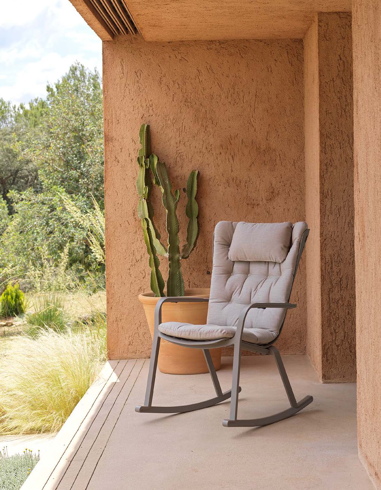 Bekväm gungstol, rygg ställbar i 2 lägen. Avtagbara medar.