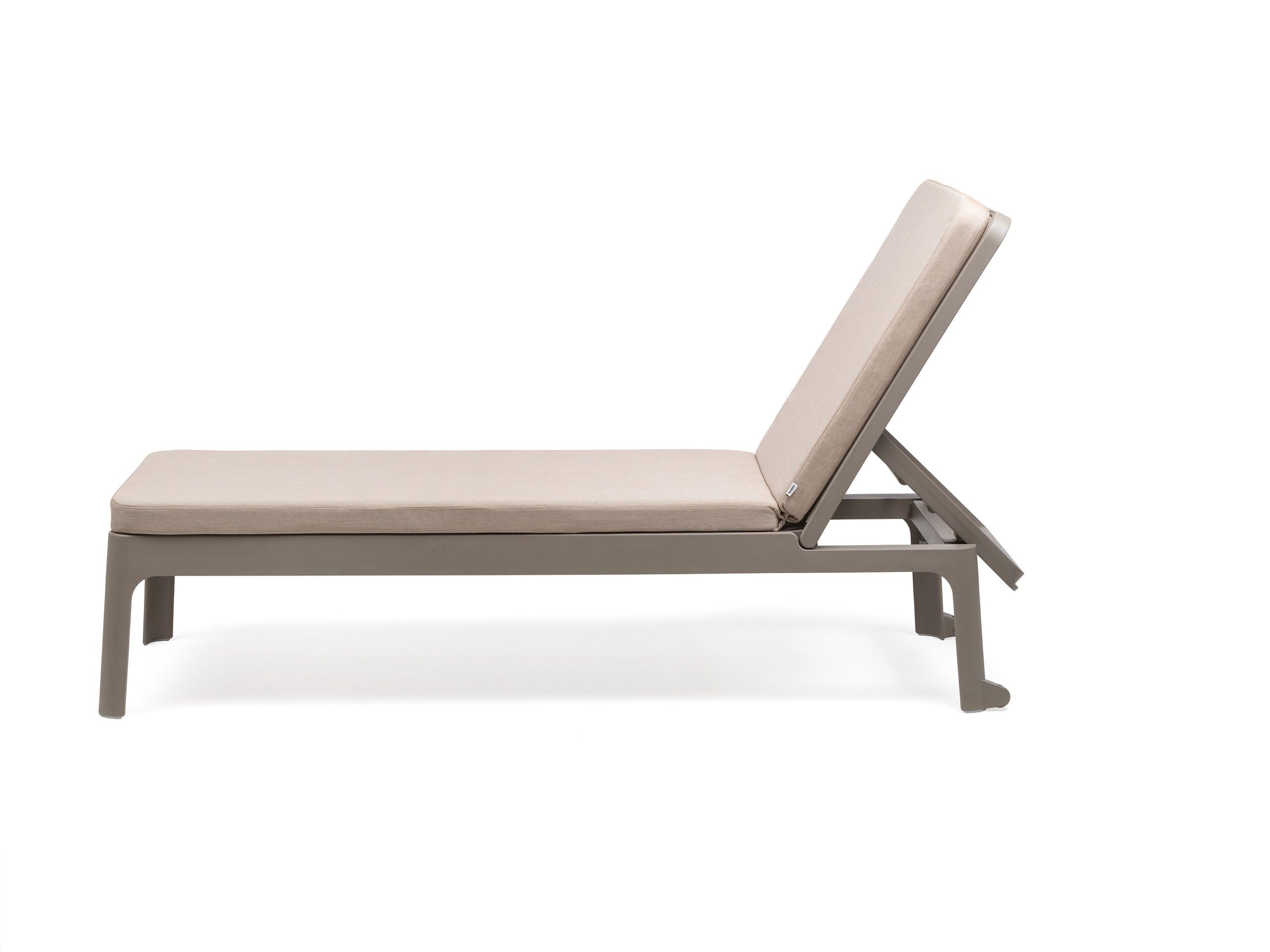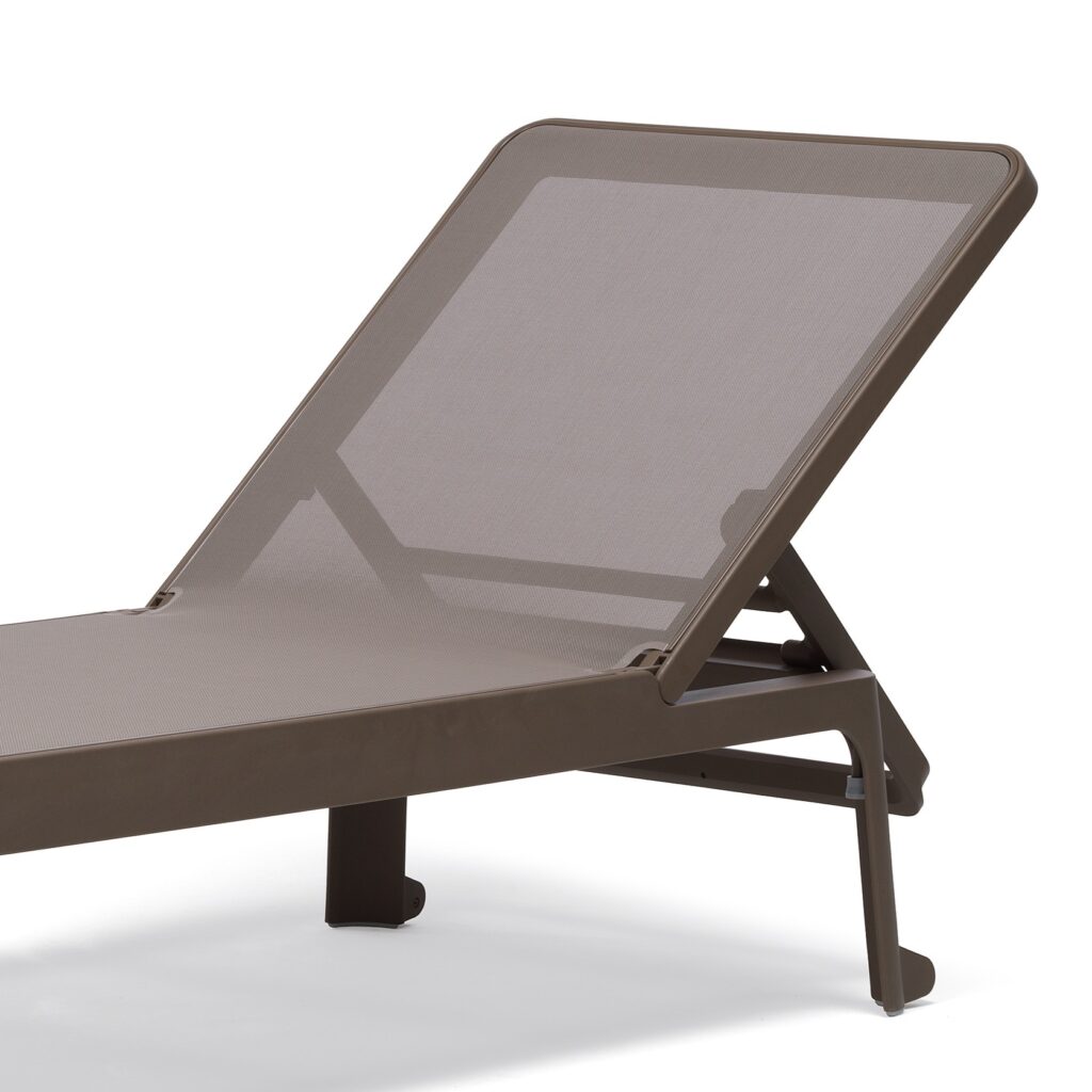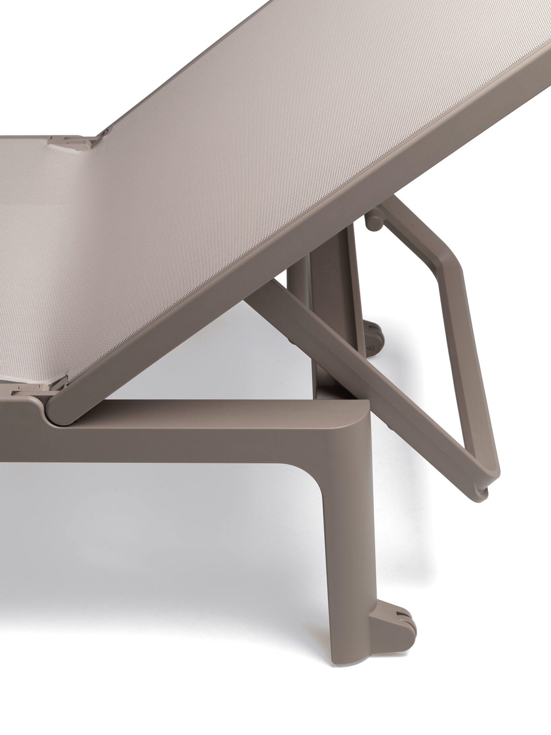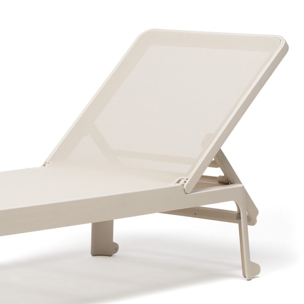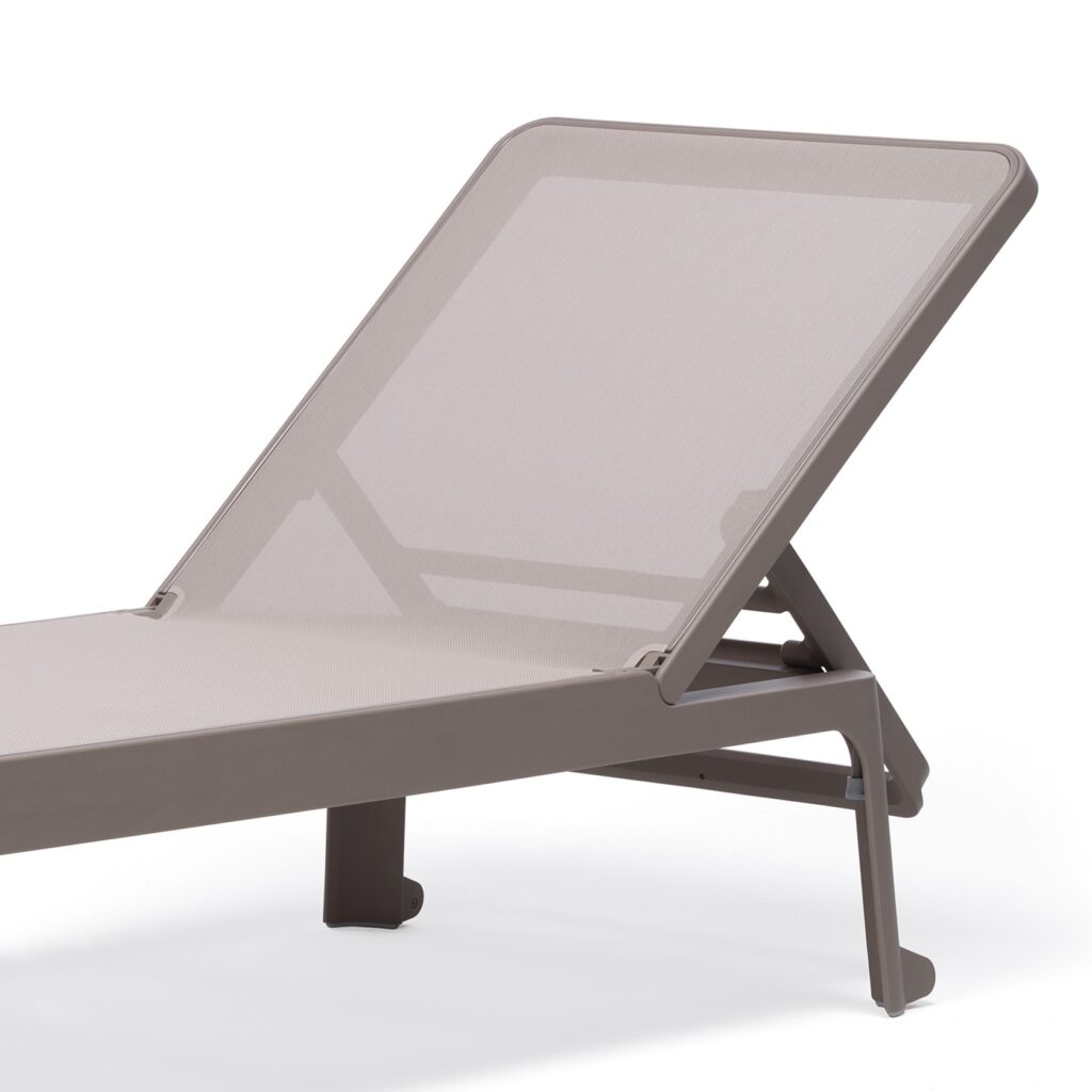 Stapelbar solsäng med rena, harmoniska linjer matchade med en bred och bekväm liggyta i syntetväv. Ryggstödet har 4 lägen för justering tills det är helt plant.