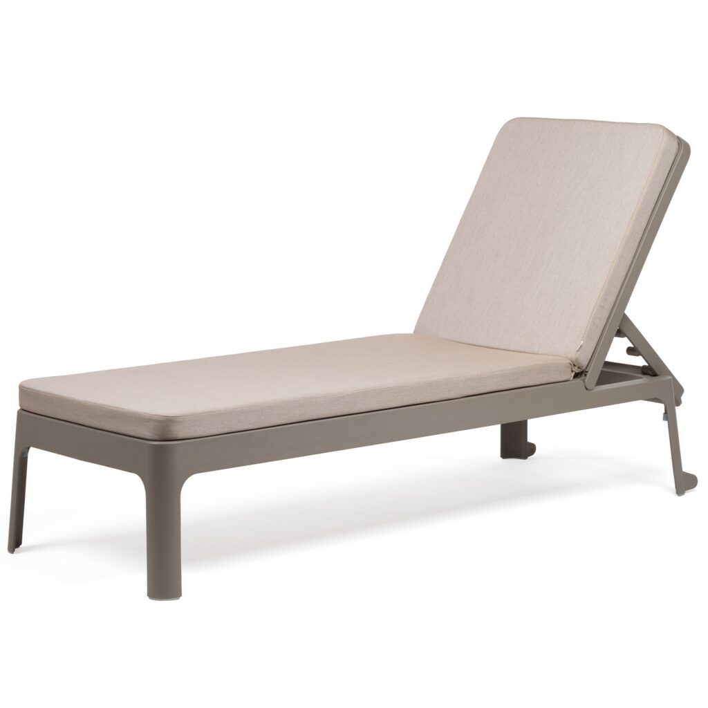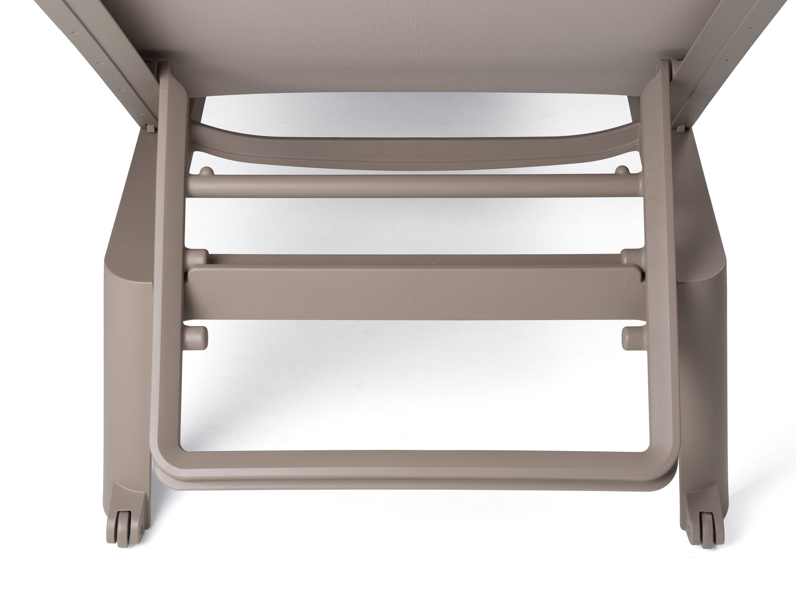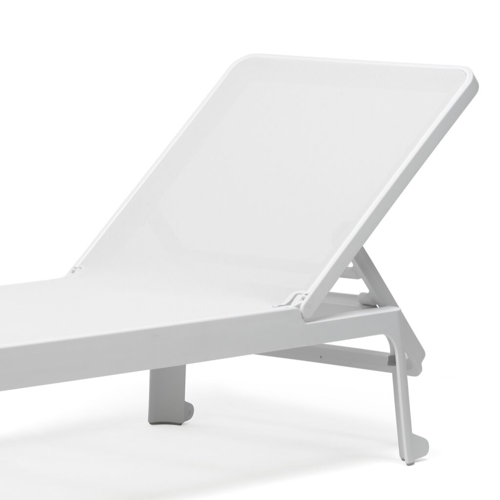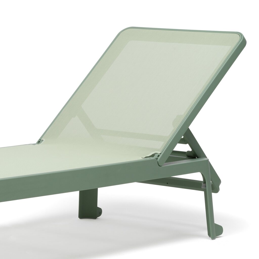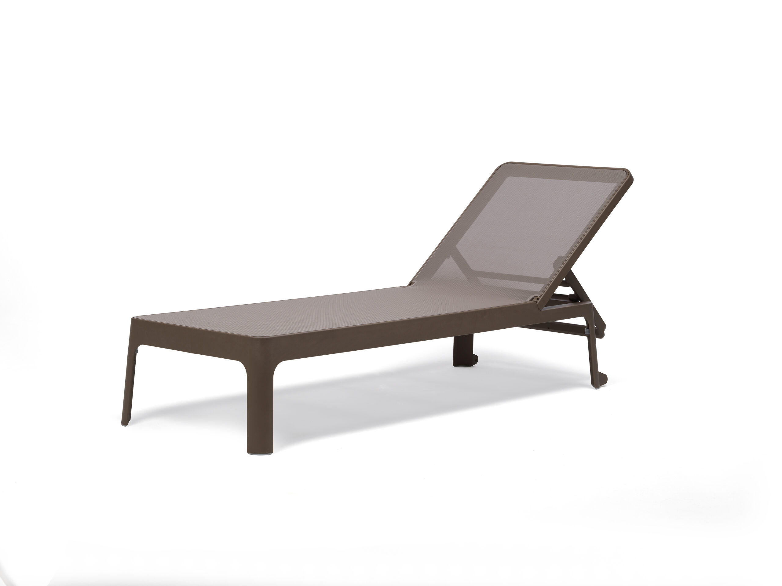 Stapelbar solsäng med rena, harmoniska linjer matchade med en bred och bekväm liggyta i syntetväv. Ryggstödet har 4 lägen för justering tills det är helt plant.
