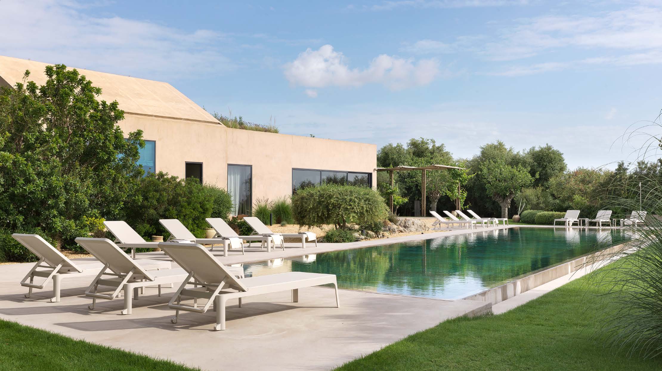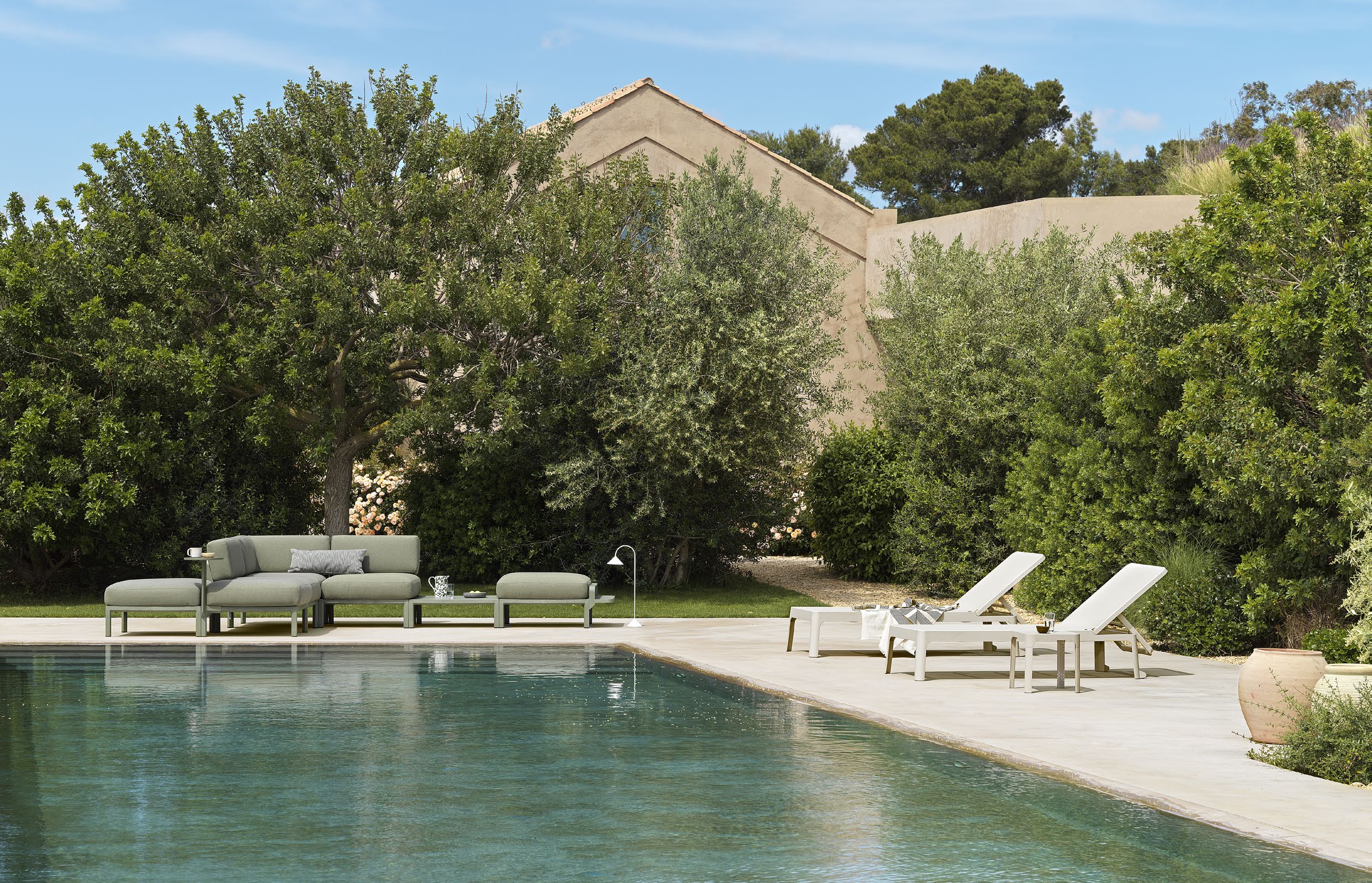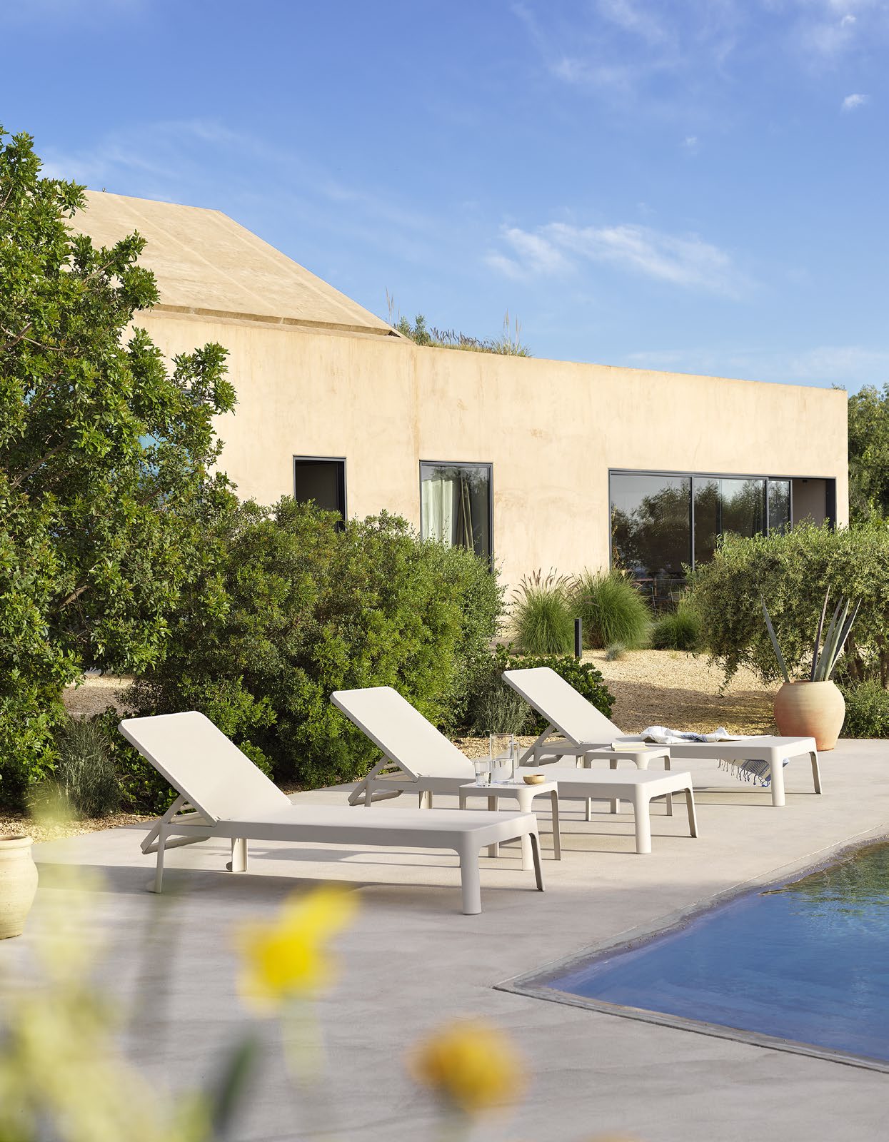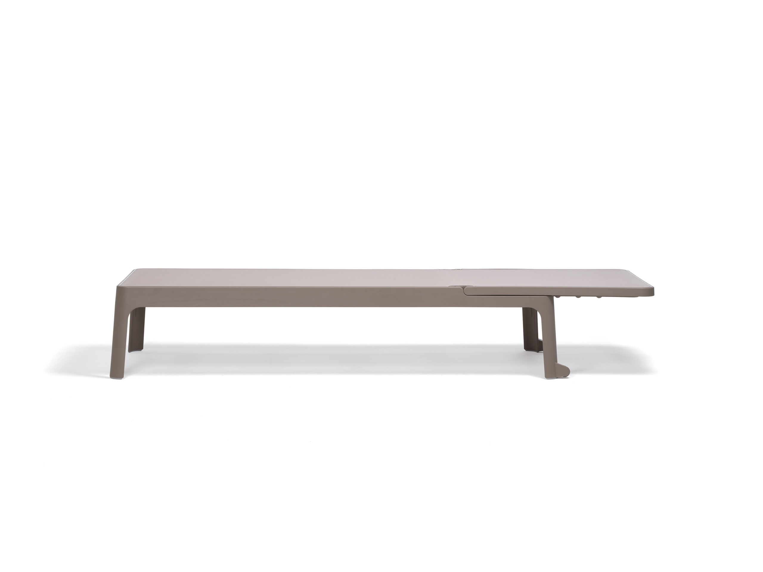 Stapelbar solsäng med rena, harmoniska linjer matchade med en bred och bekväm liggyta i syntetväv. Ryggstödet har 4 lägen för justering tills det är helt plant.