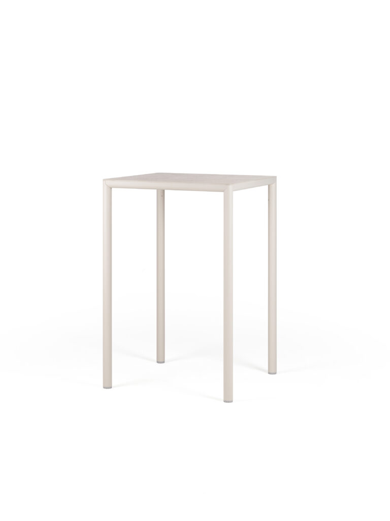 Fyra färgställningar. Bordsskiva i kompaktlaminat 6mm med färgmatchade ben i aluminium. Ställfötter.
