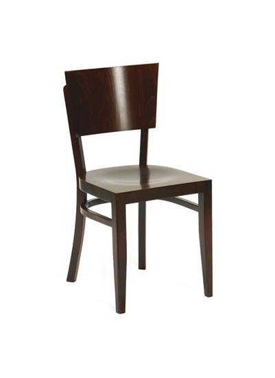 Klassisk restaurangstol med trärygg. Sits i trä eller stoppad & klädd. Stomme i bok (natur/bets/lack).