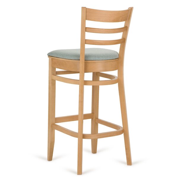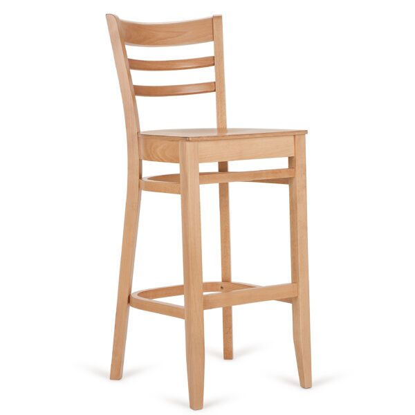 Barstol med sits i trä eller stoppad och klädd. Stomme i bok (natur/bets/lack).