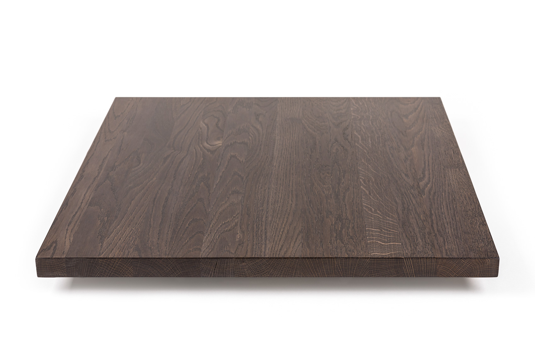 Bordsskiva i massiv bok. Tjocklek 28mm. Rak kant. Metallförstärkning undertill för att förhindra att skivorna slår sig.