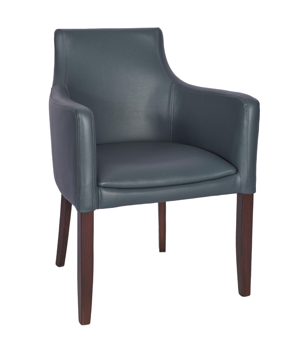 Repton karmstol / liten fåtölj. Stomme i valnötsbetsad bok. Brandklassad stoppning och brandklassat konstläder (8 olika kulörer), CRIB5.