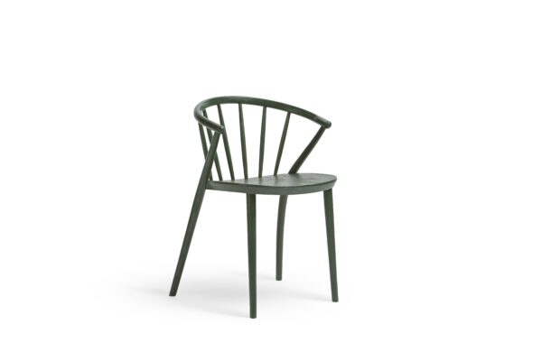 Modern variant av pinn-/böjträstol. Sits i trä eller stoppad och klädd. Stomme (natur/bets/lack). Höjd armstöd = 650mm.