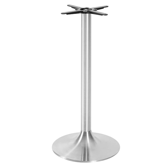 Bordsstativ TRUMPET SS MEDIUM med fot d.53cm, finns i fem standardhöjder (h.43-55-72-88-110cm). Borstat rostfritt, med vikt i gjutjärn.