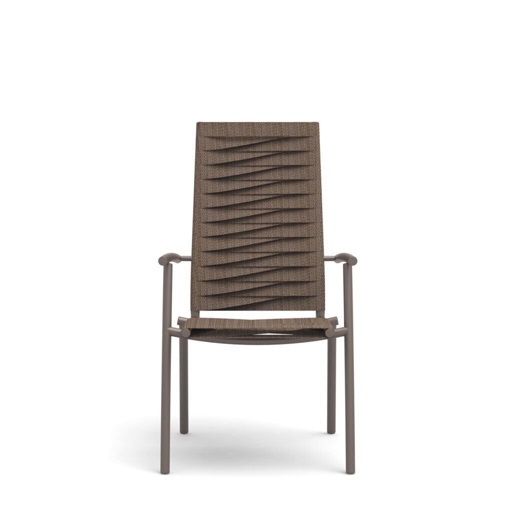 VOLÉE – modern exklusiv familj i design av Marcello Zillani. Stomme i galvaniserat och lackat stål, sits och rygg med snyggt flätade breda band. Banden är eleganta och slitstarka, tillverkade av massfärgad akryl och AT-polyester erbjuder de långvarig vattenavvisande effekt – perfekt för eleganta och hållbara utomhusutrymmen.