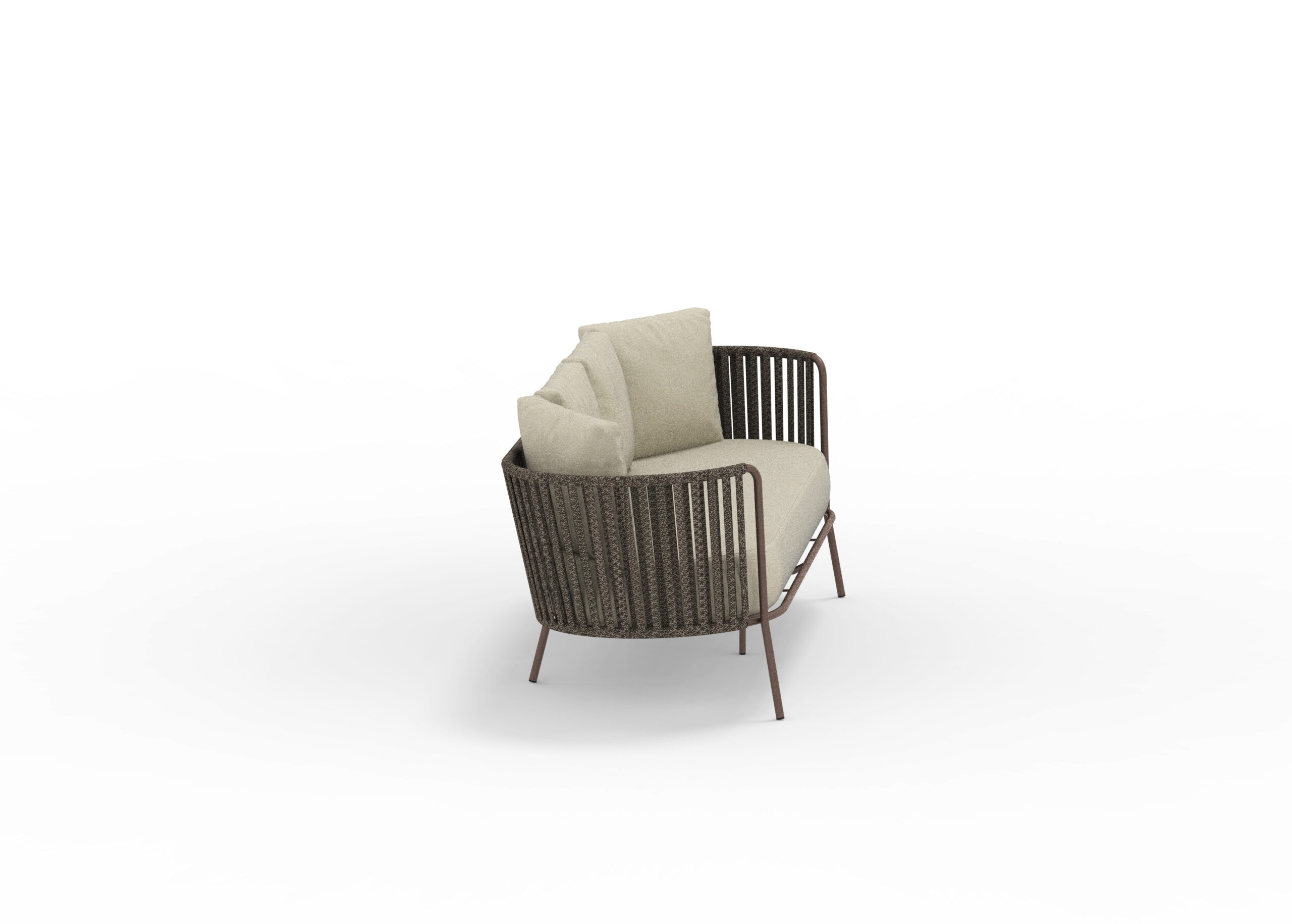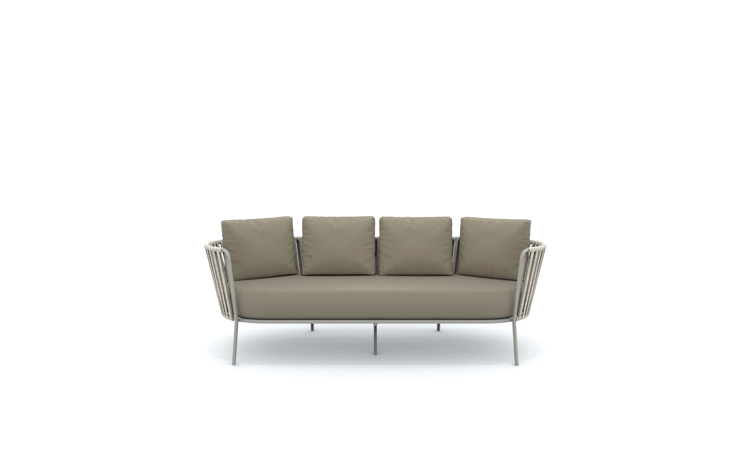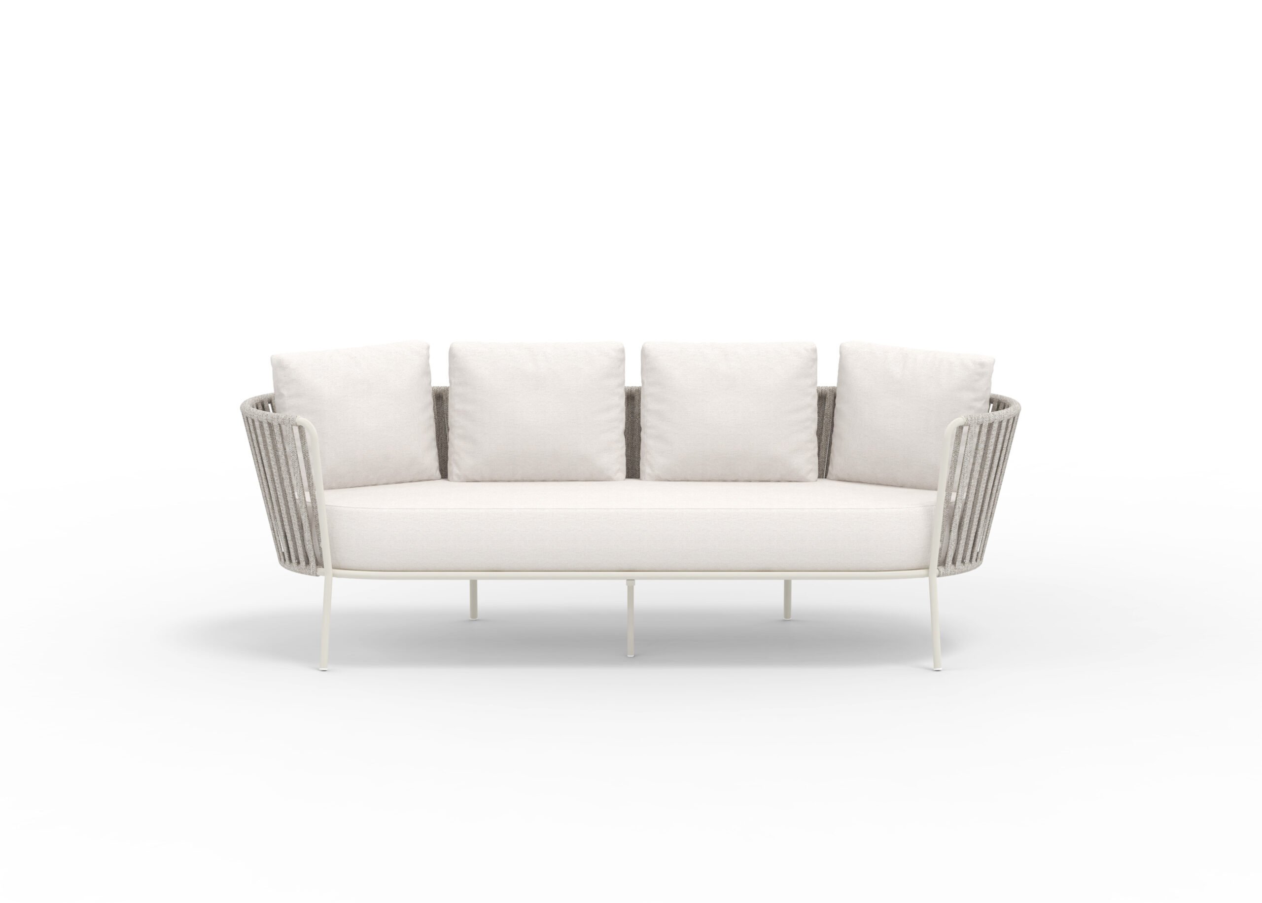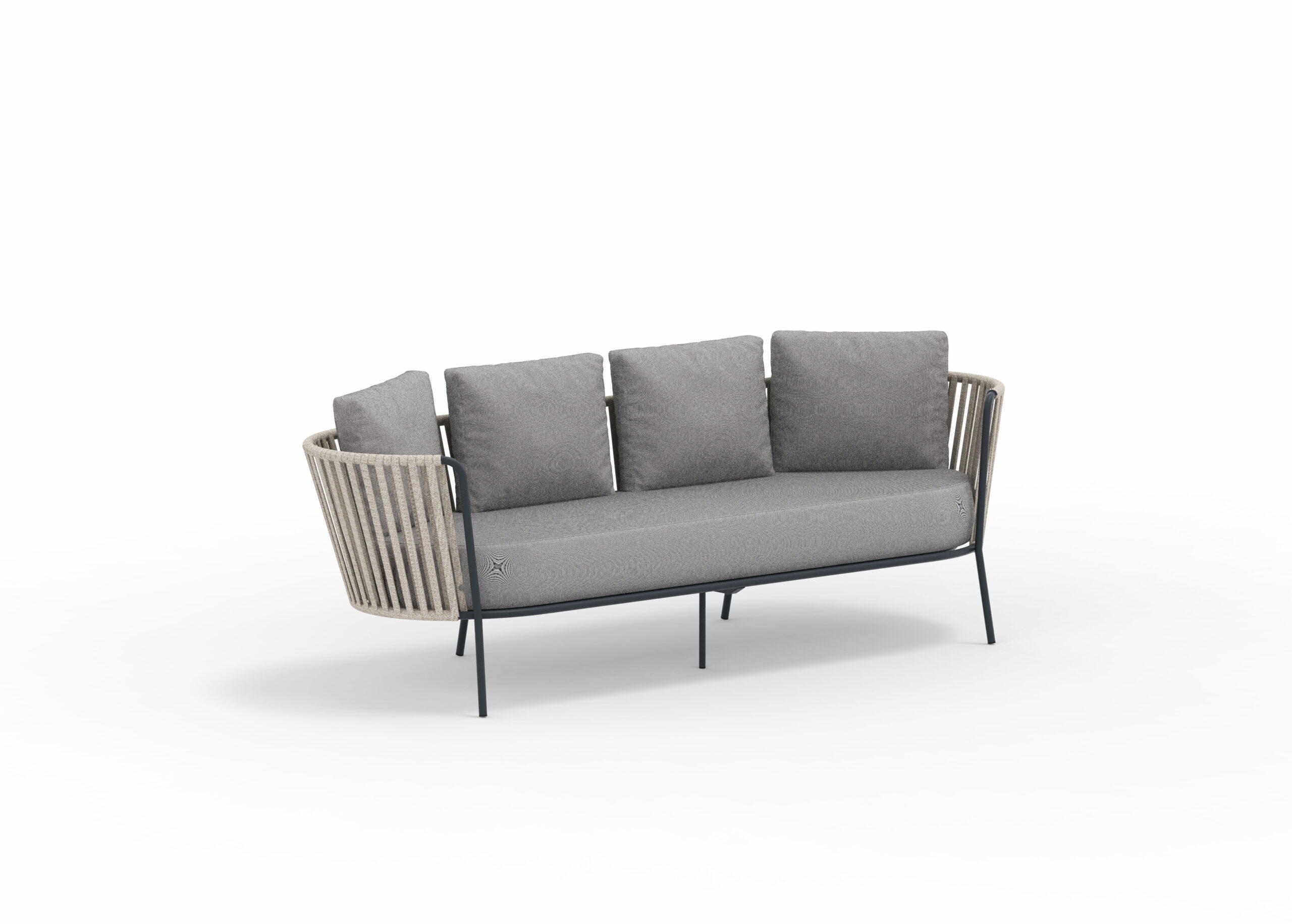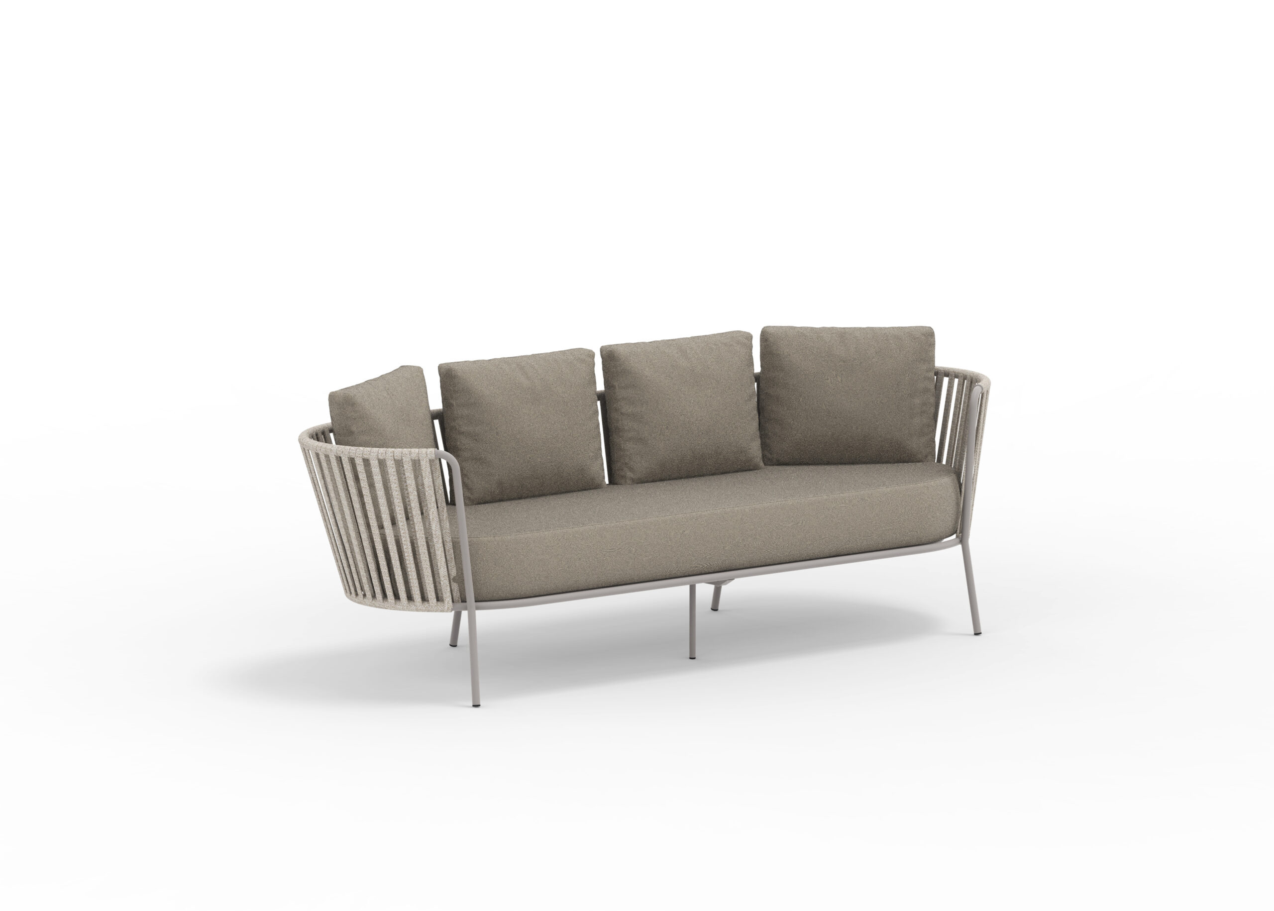 Loungesoffa 216cm med vädertålig flätning & klädd i vattentätt tyg i flera varianter. Priset är inklusive sittdyna & 4 ryggdynor.