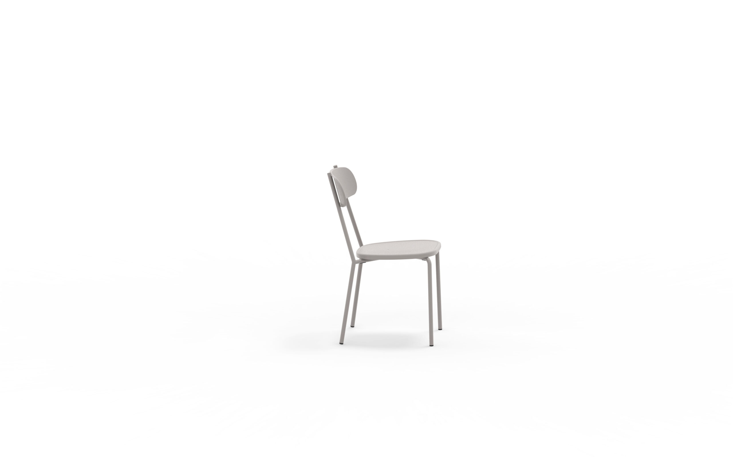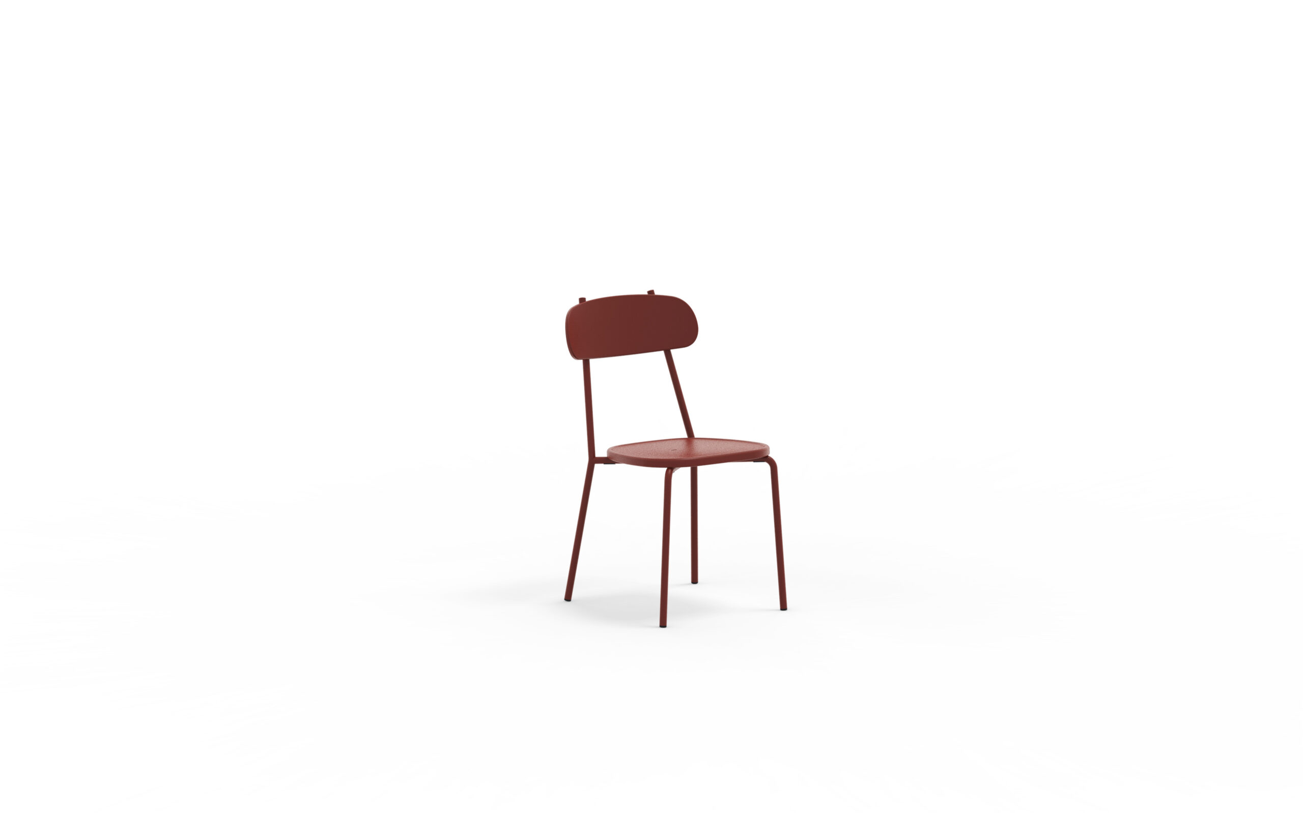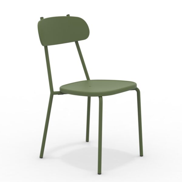 Modern stol i kraftigt stålrör. Galvaniserad och lackad, finns i 16 färger. Stapelbar. Tillval: Sittdyna i vattentätt tyg, med magnet.