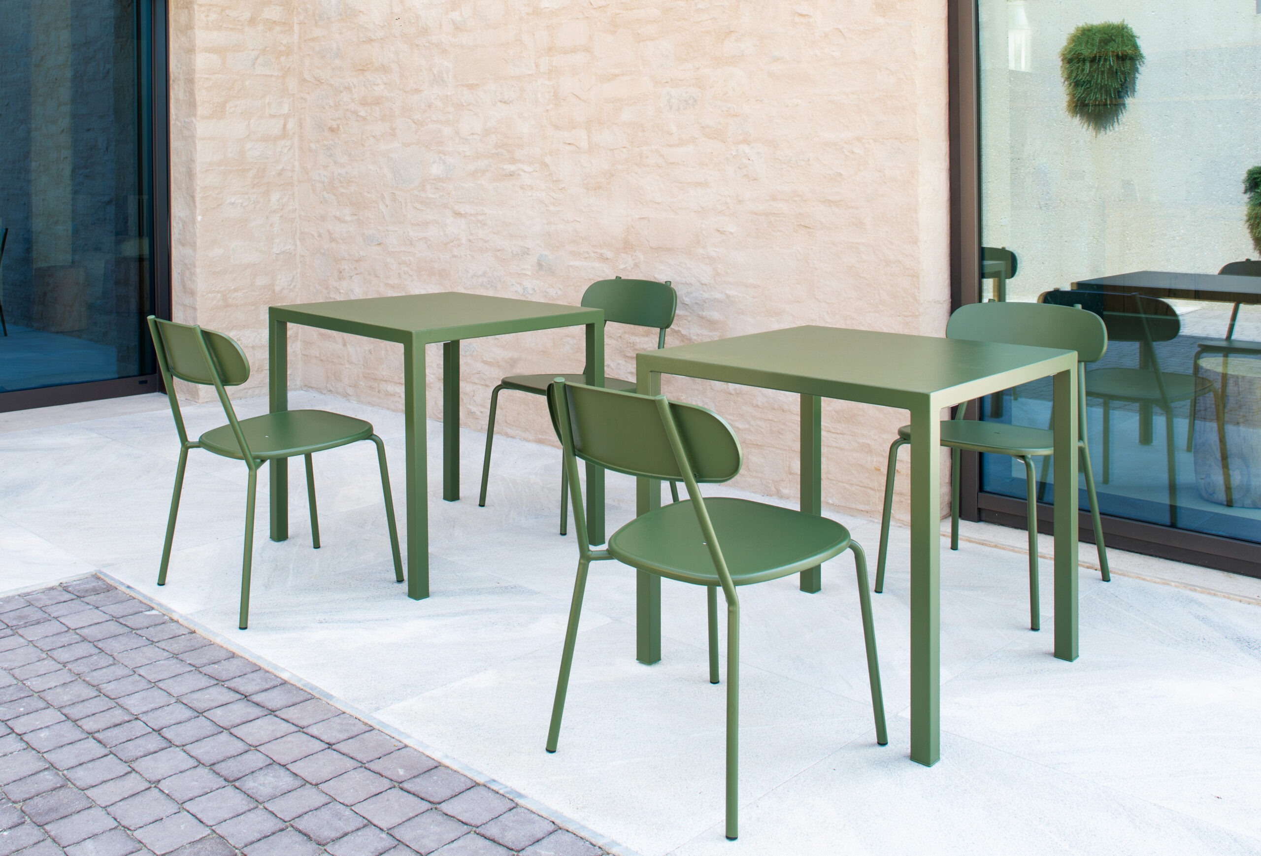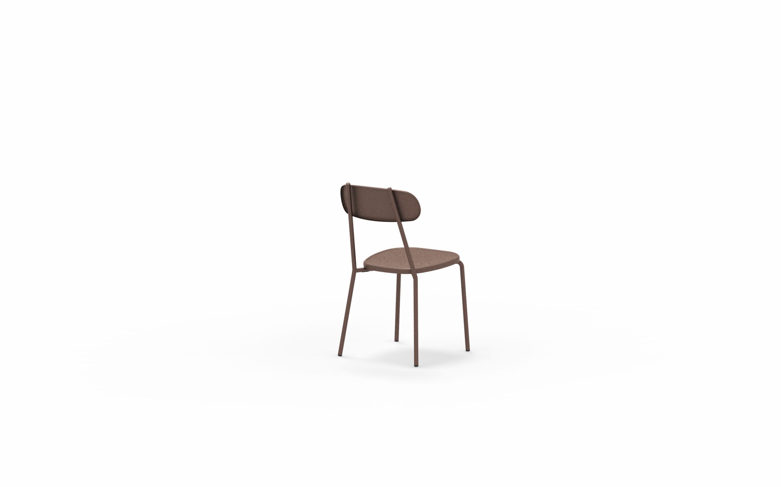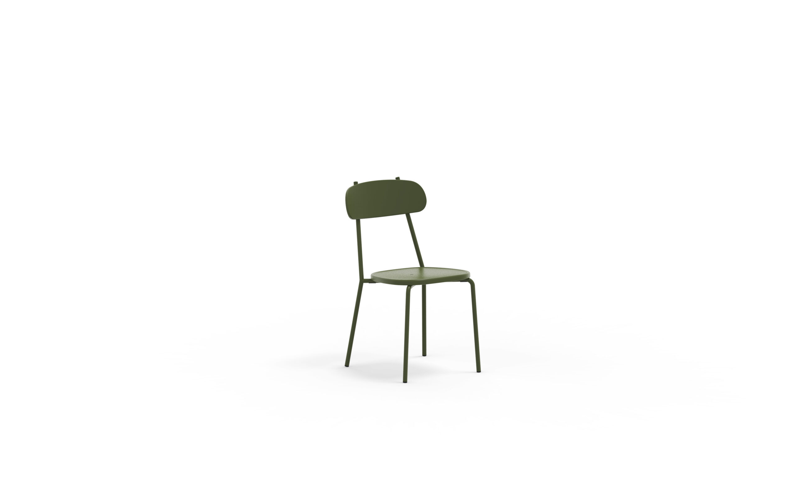 Modern stol i kraftigt stålrör. Galvaniserad och lackad, finns i 16 färger. Stapelbar. Tillval: Sittdyna i vattentätt tyg, med magnet.