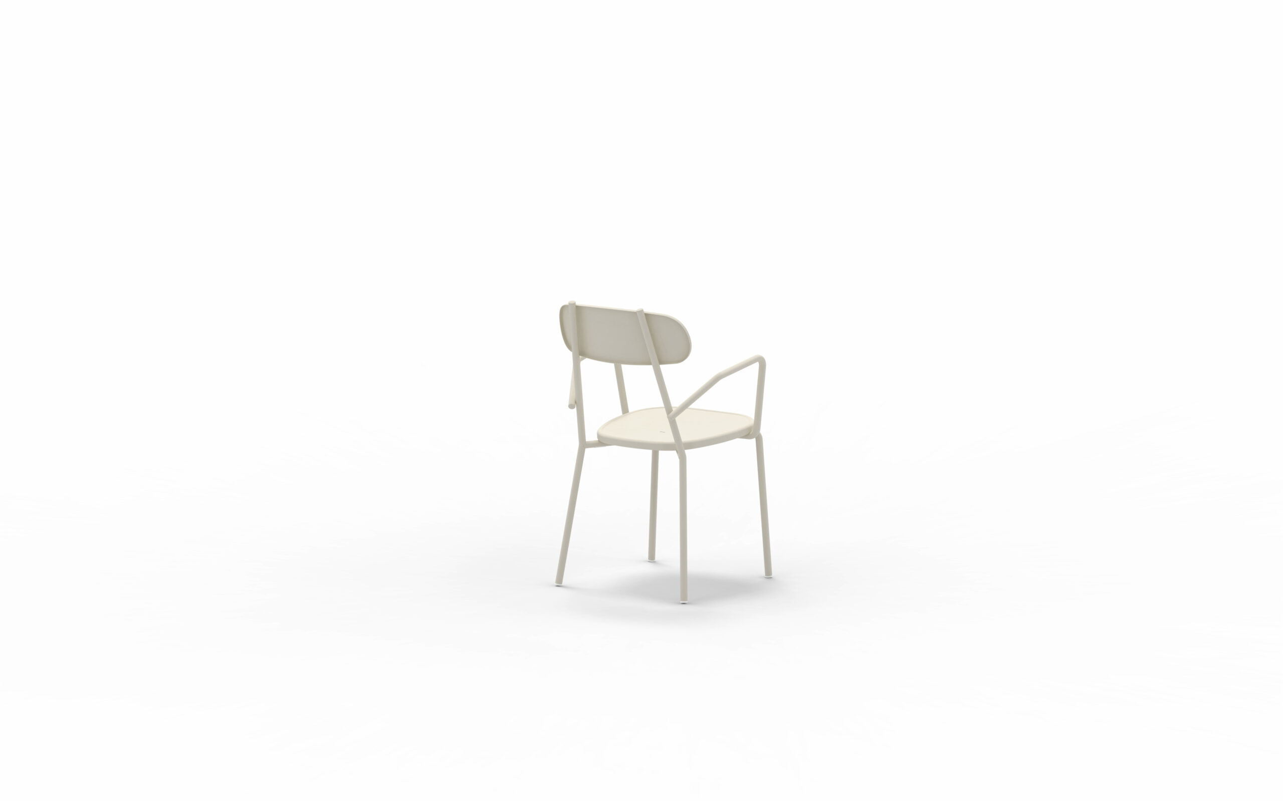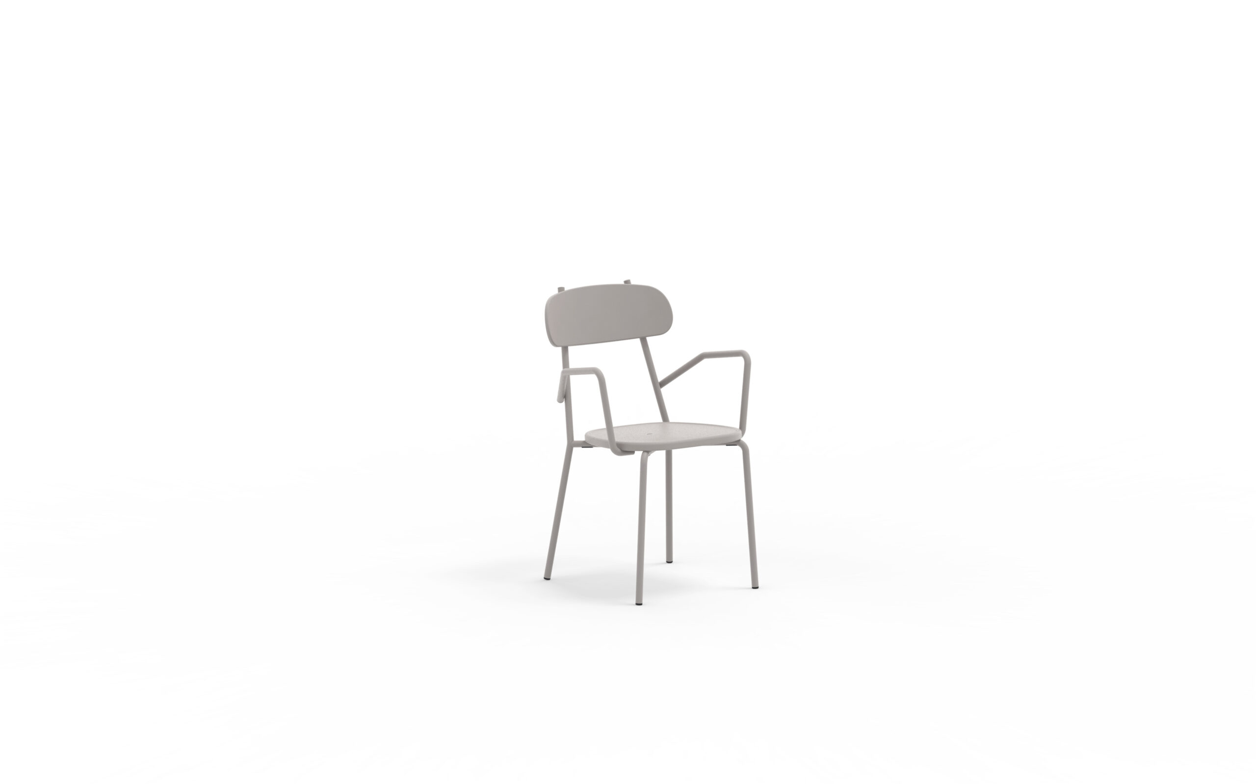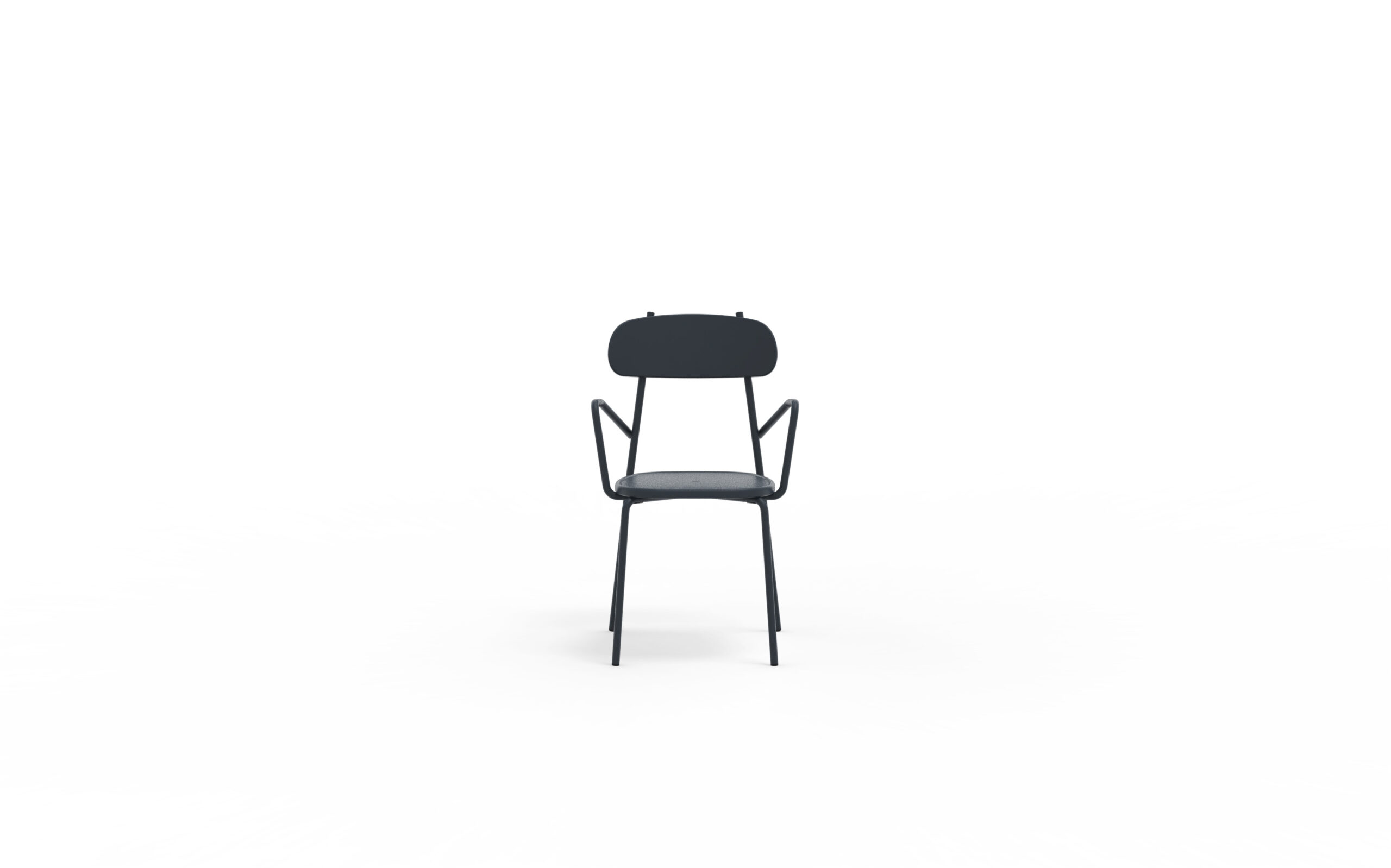 Modern karmstol i kraftigt stålrör. Karmhöjd 66cm. Galvaniserad och lackad, finns i 16 färger. Stapelbar. Tillval: Sittdyna i vattentätt tyg, med magnet.