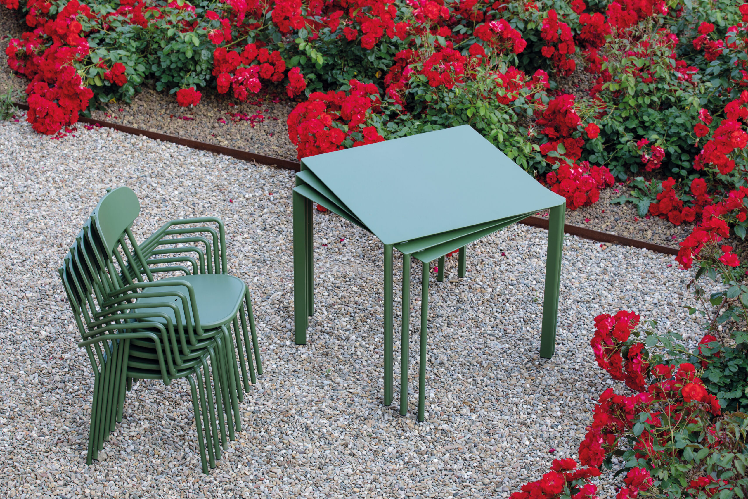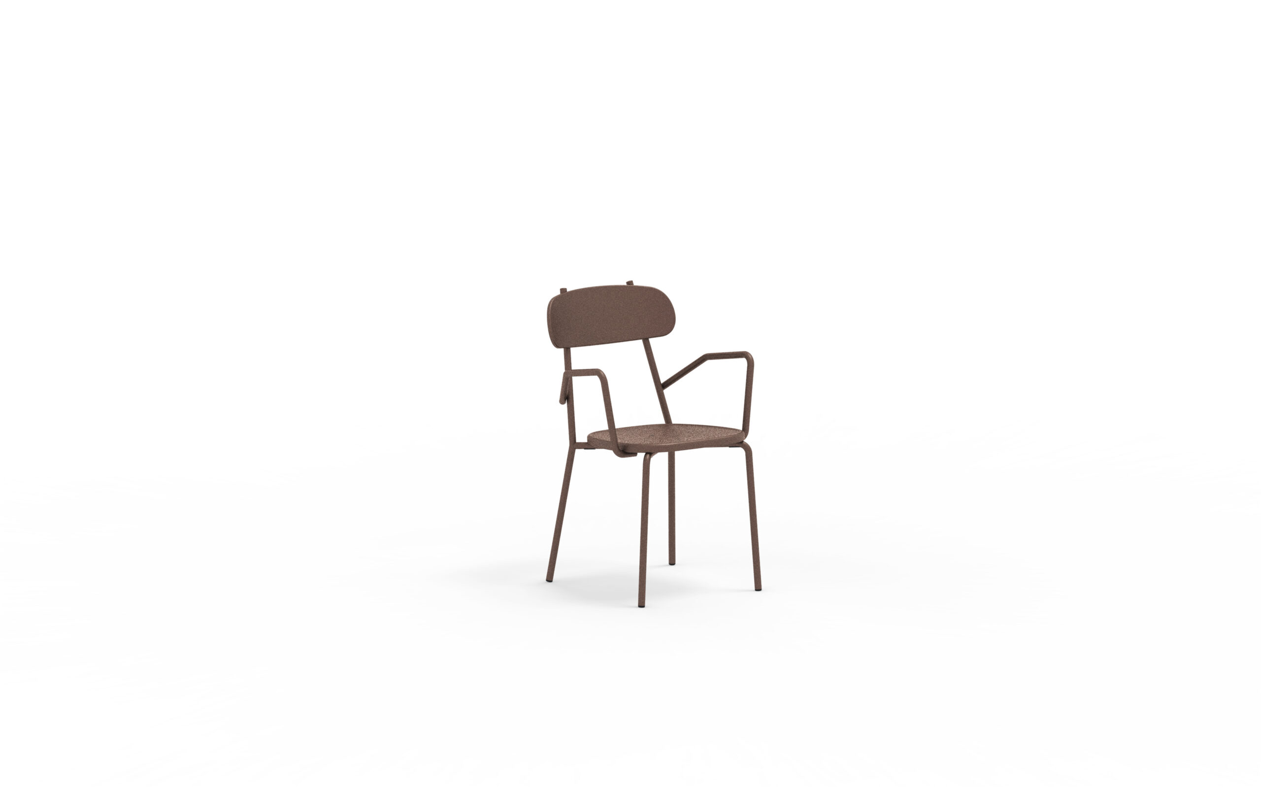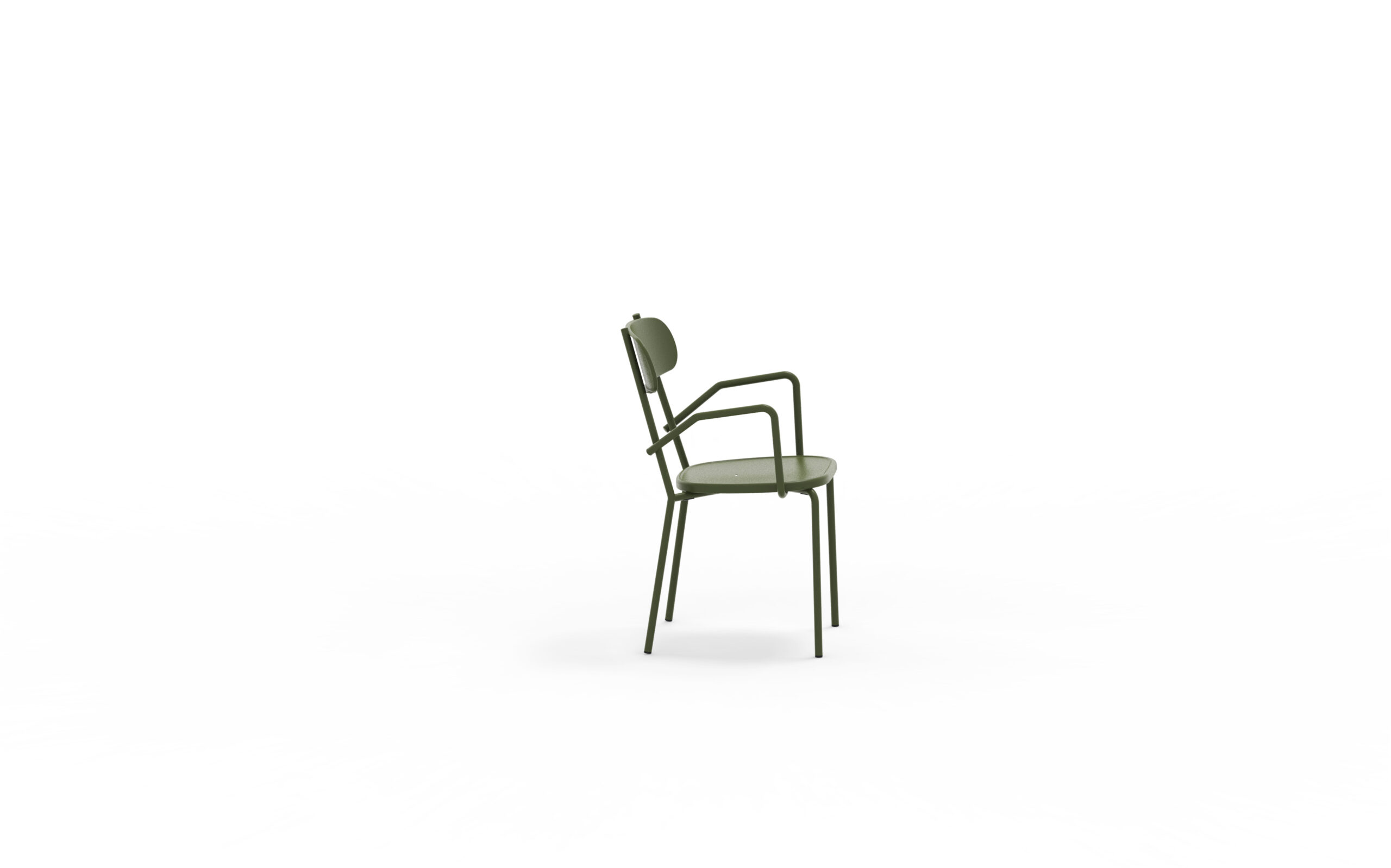 Modern karmstol i kraftigt stålrör. Karmhöjd 66cm. Galvaniserad och lackad, finns i 16 färger. Stapelbar. Tillval: Sittdyna i vattentätt tyg, med magnet.