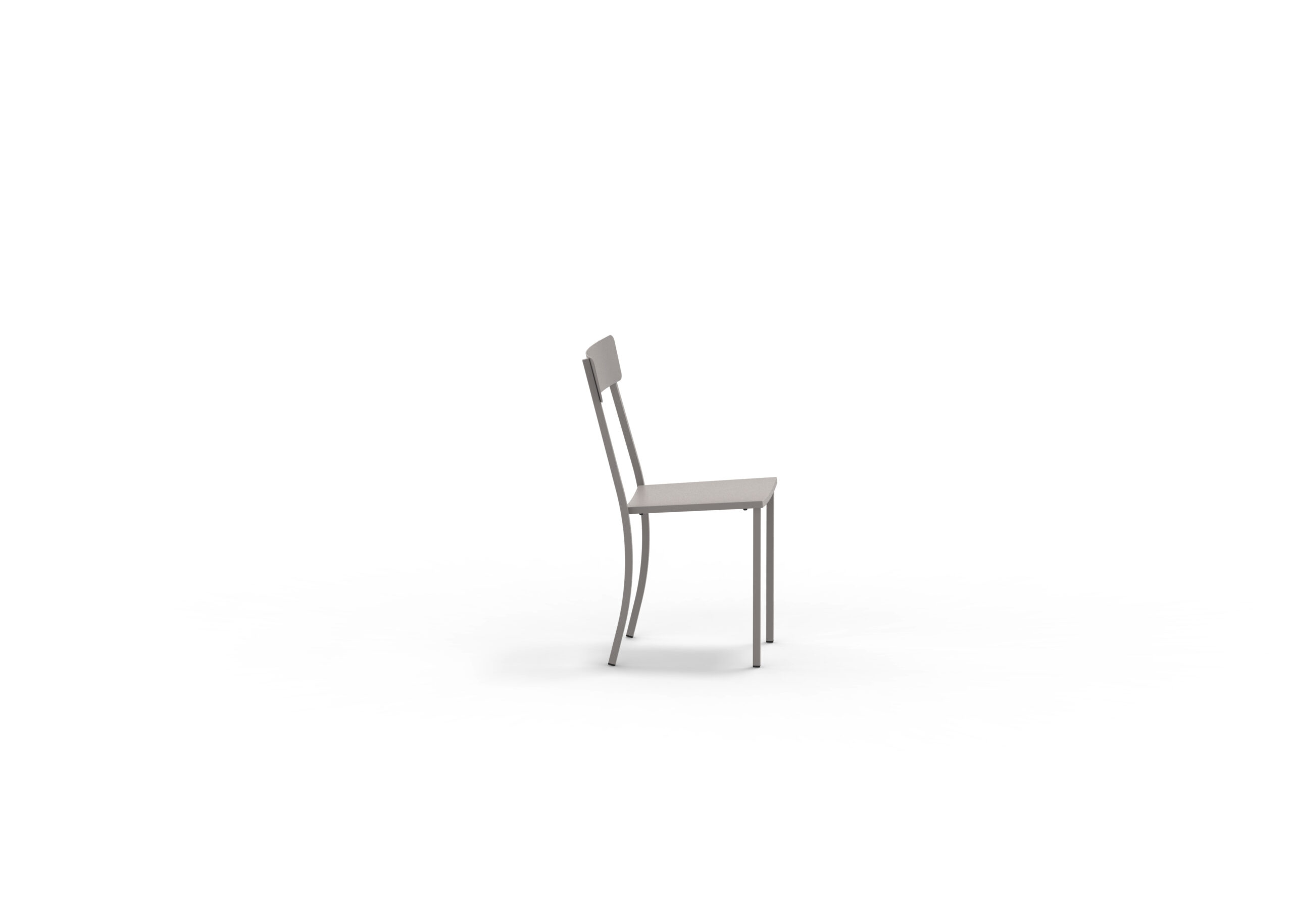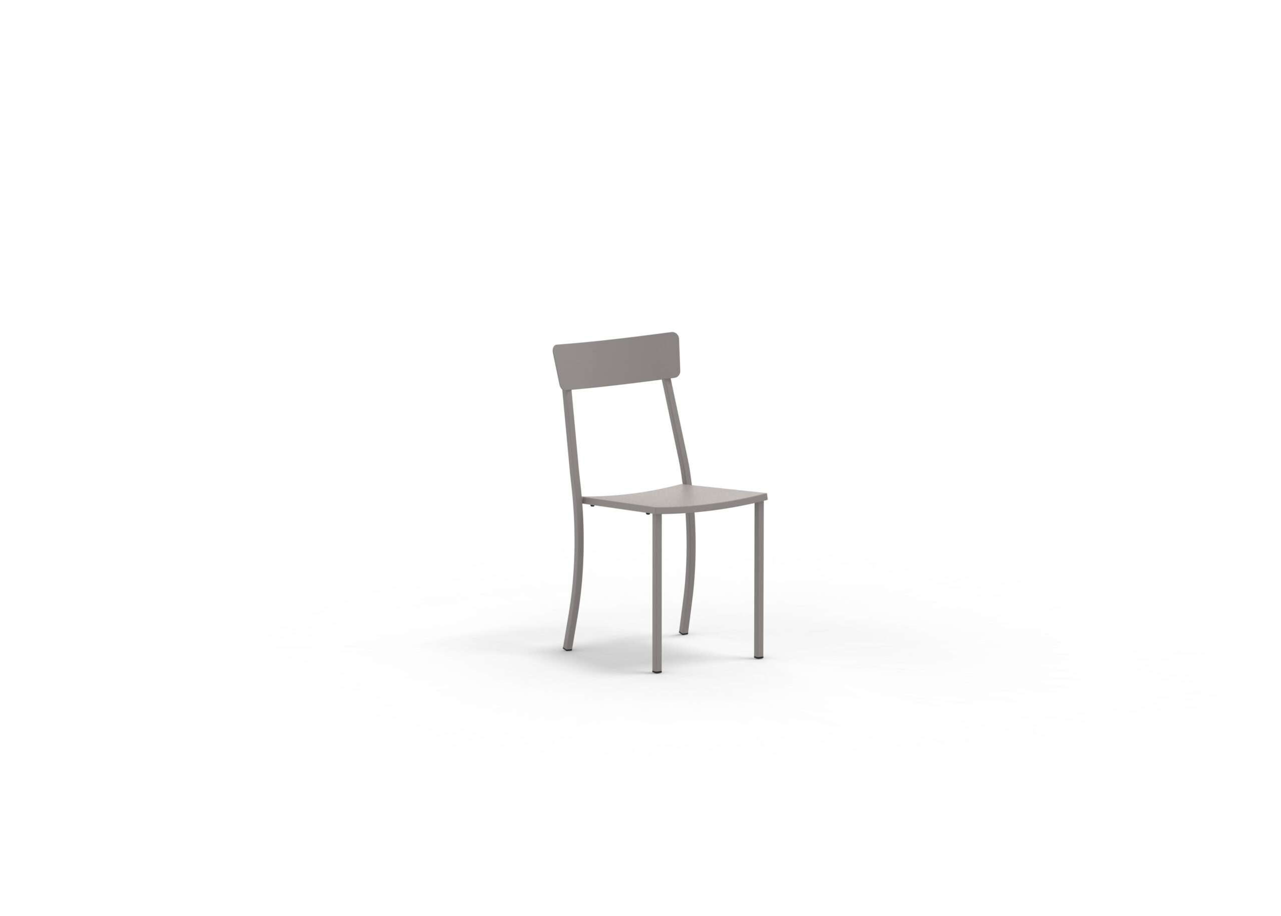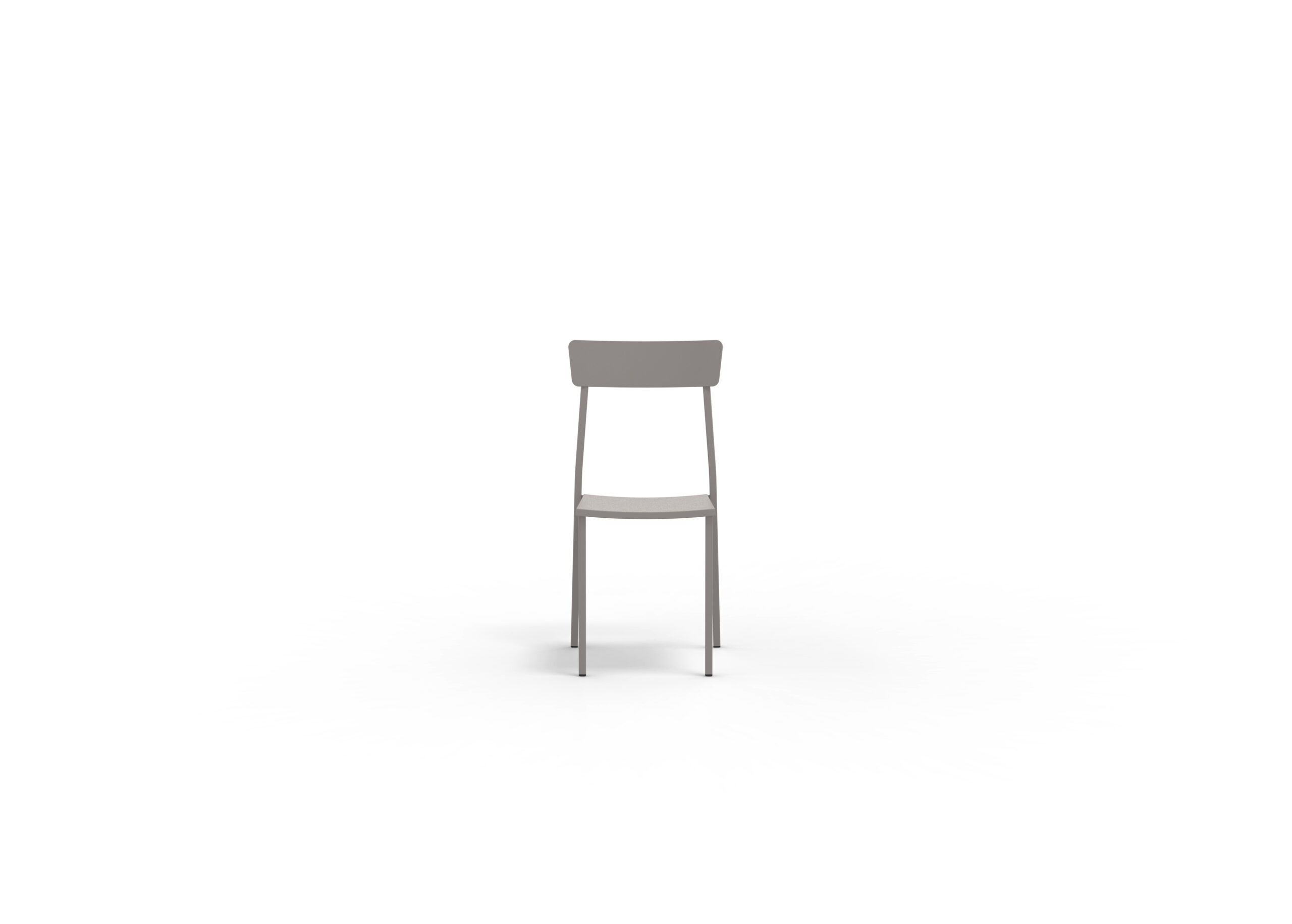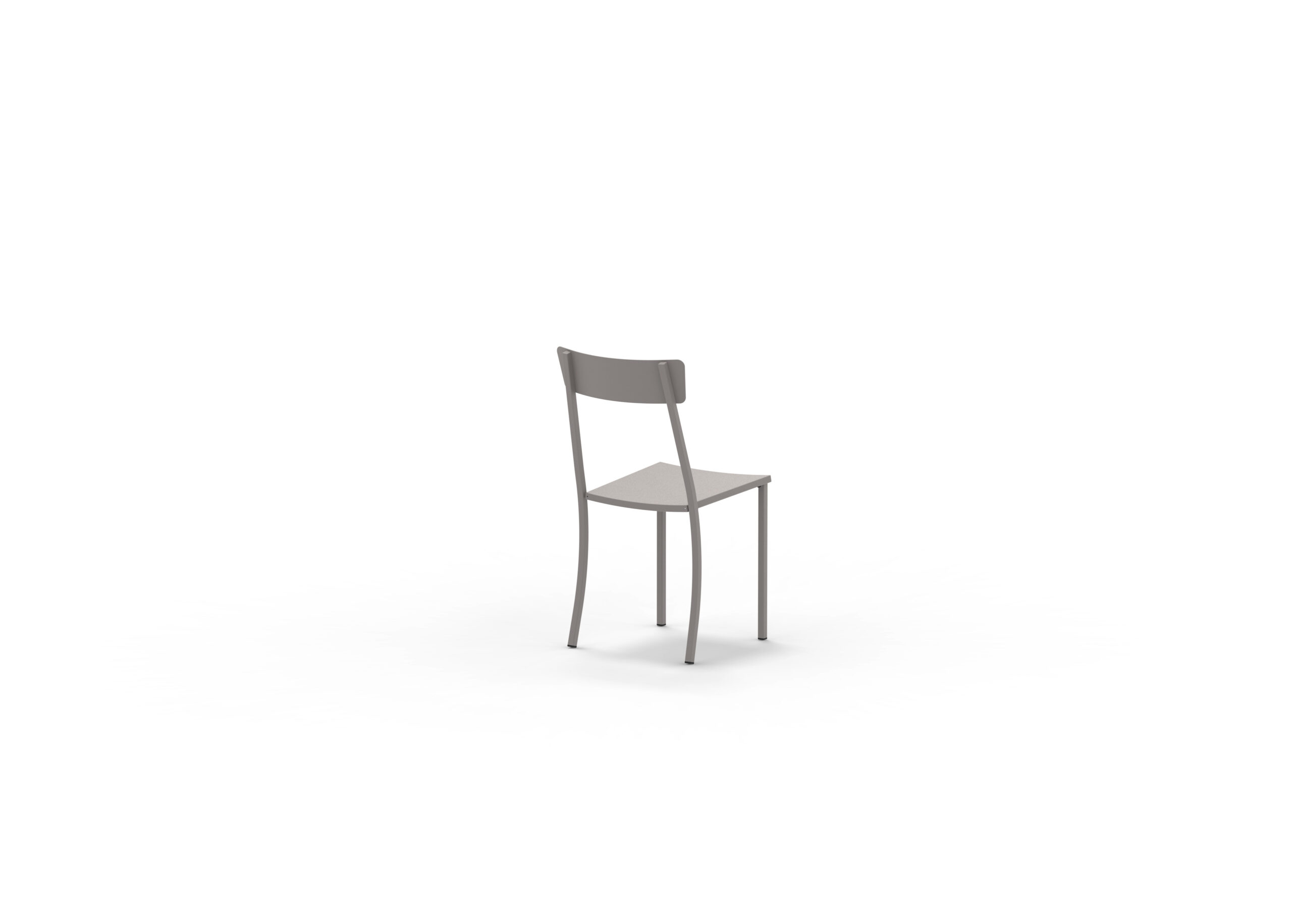 MOGAN stilren stol med öppen rygg. Galvaniserat och lackat stål, lack FA Grey Mud (Fango, höstgrå). Stapelbar.