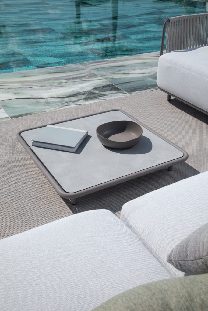 Loungebord 80*80cm, h.35cm. Galvaniserat och lackat stål, 4 standardlacker.