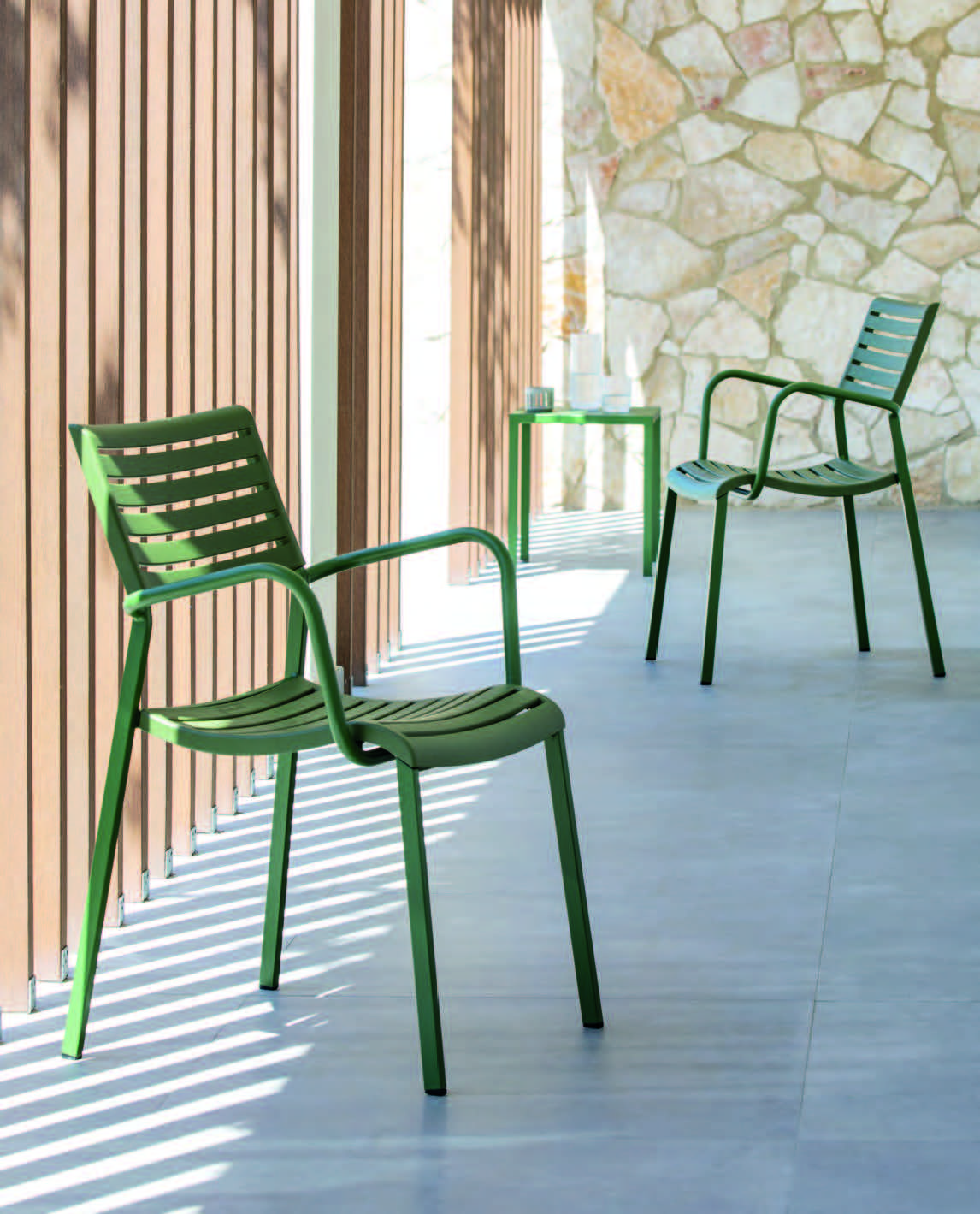 NYHET 2026 – karmstol NINA – samtida, fräsch och bekväm! Stomme i galvaniserat och lackat stål, sits och rygg i färgmatchat polypropen.