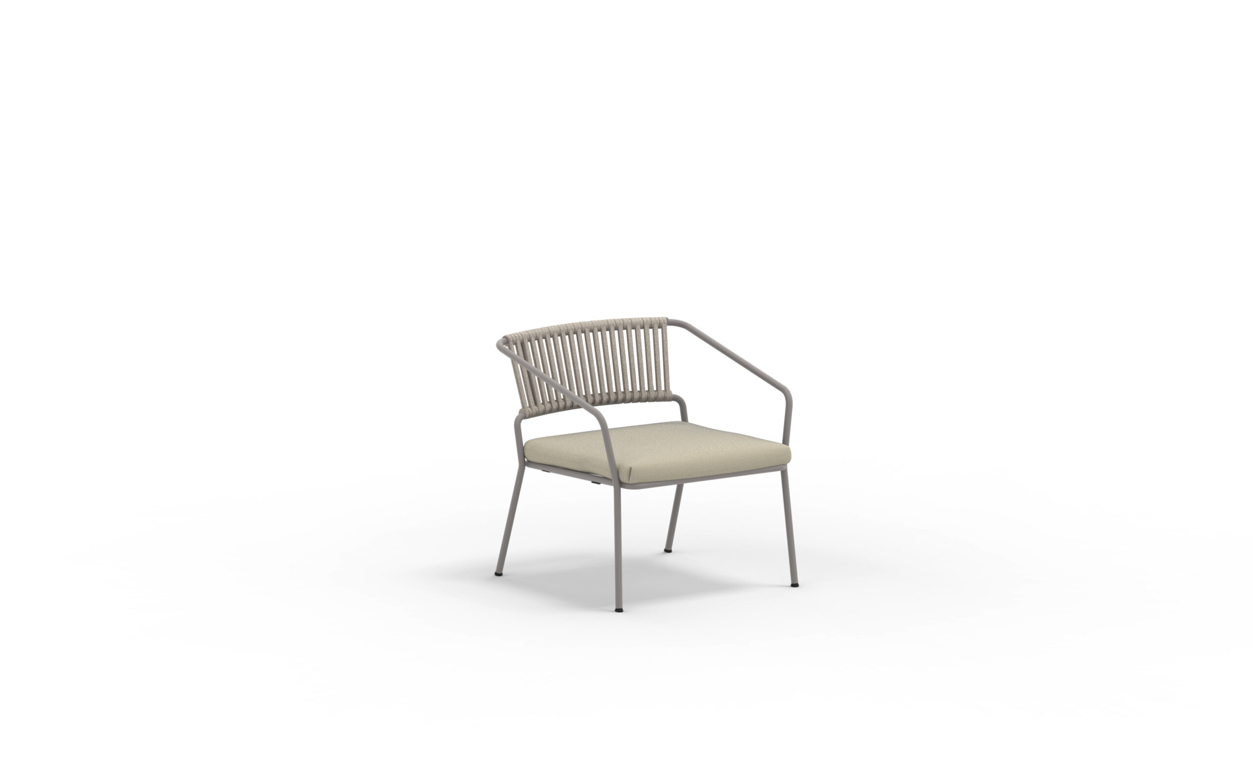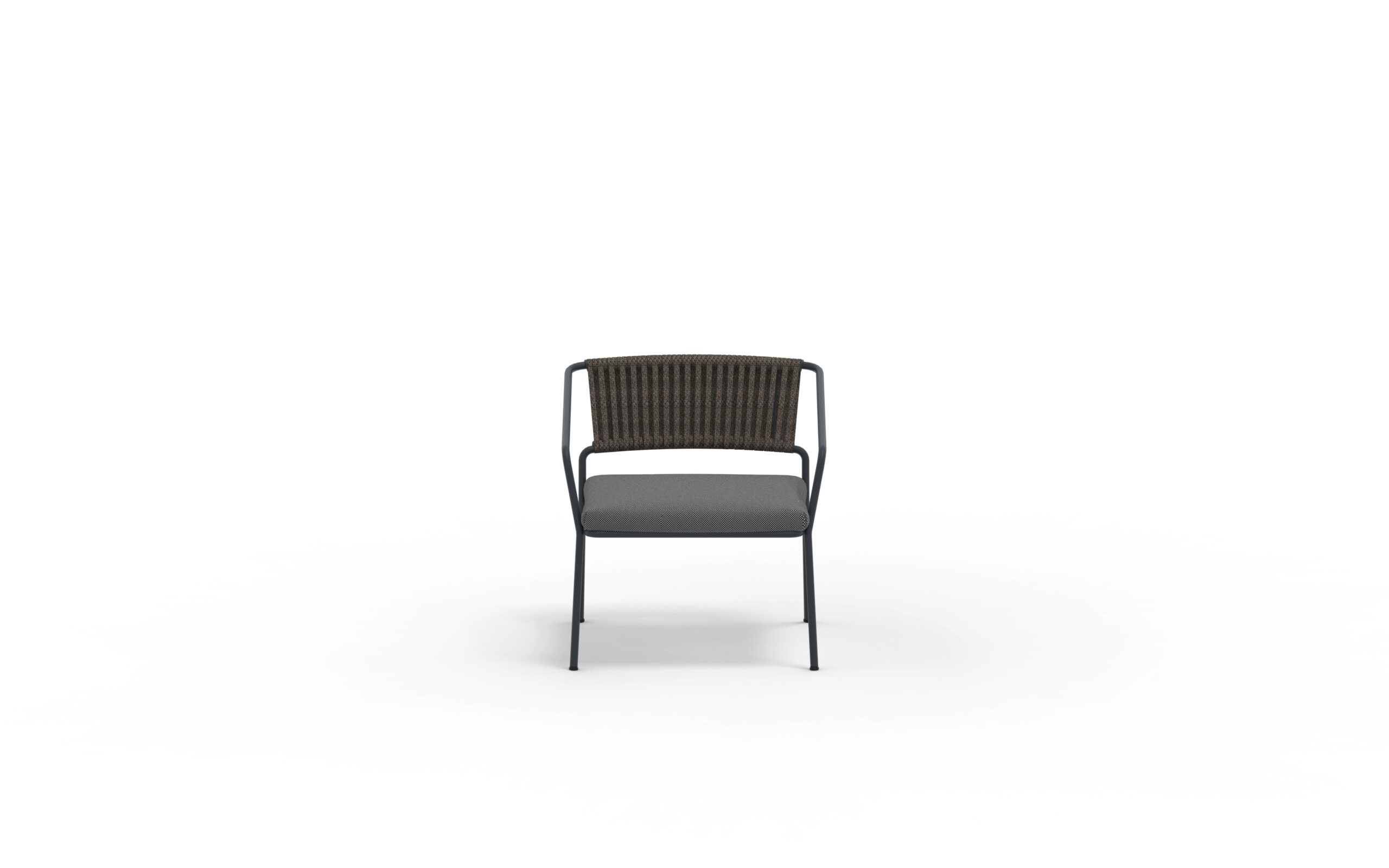 SLOT. Modern möbelserie i galvaniserat och lackat stål. Rygg flätad i vädertåligt rep. I serien finns karmstol, barstol, loungefåtölj och loungesoffa.