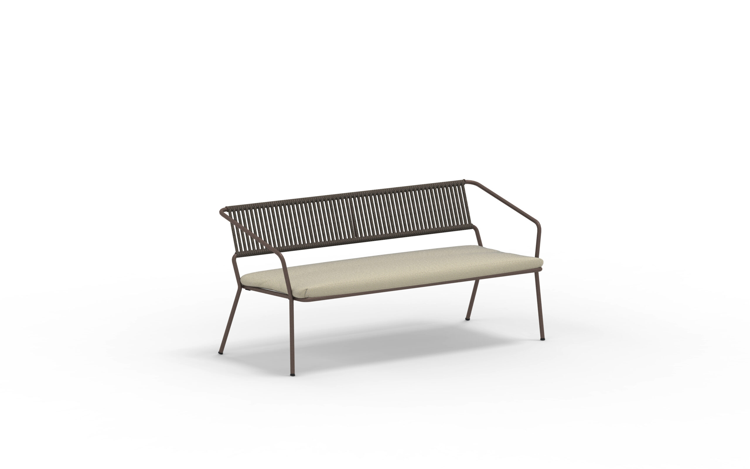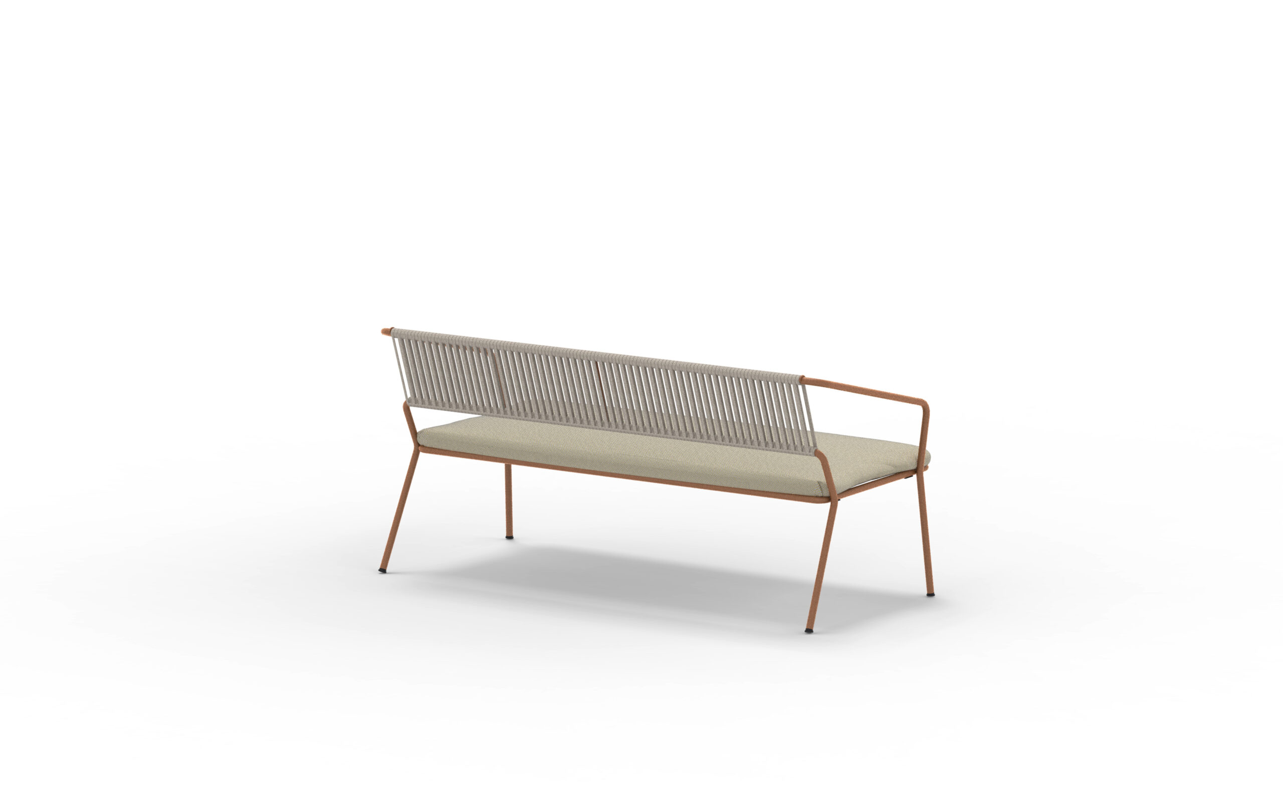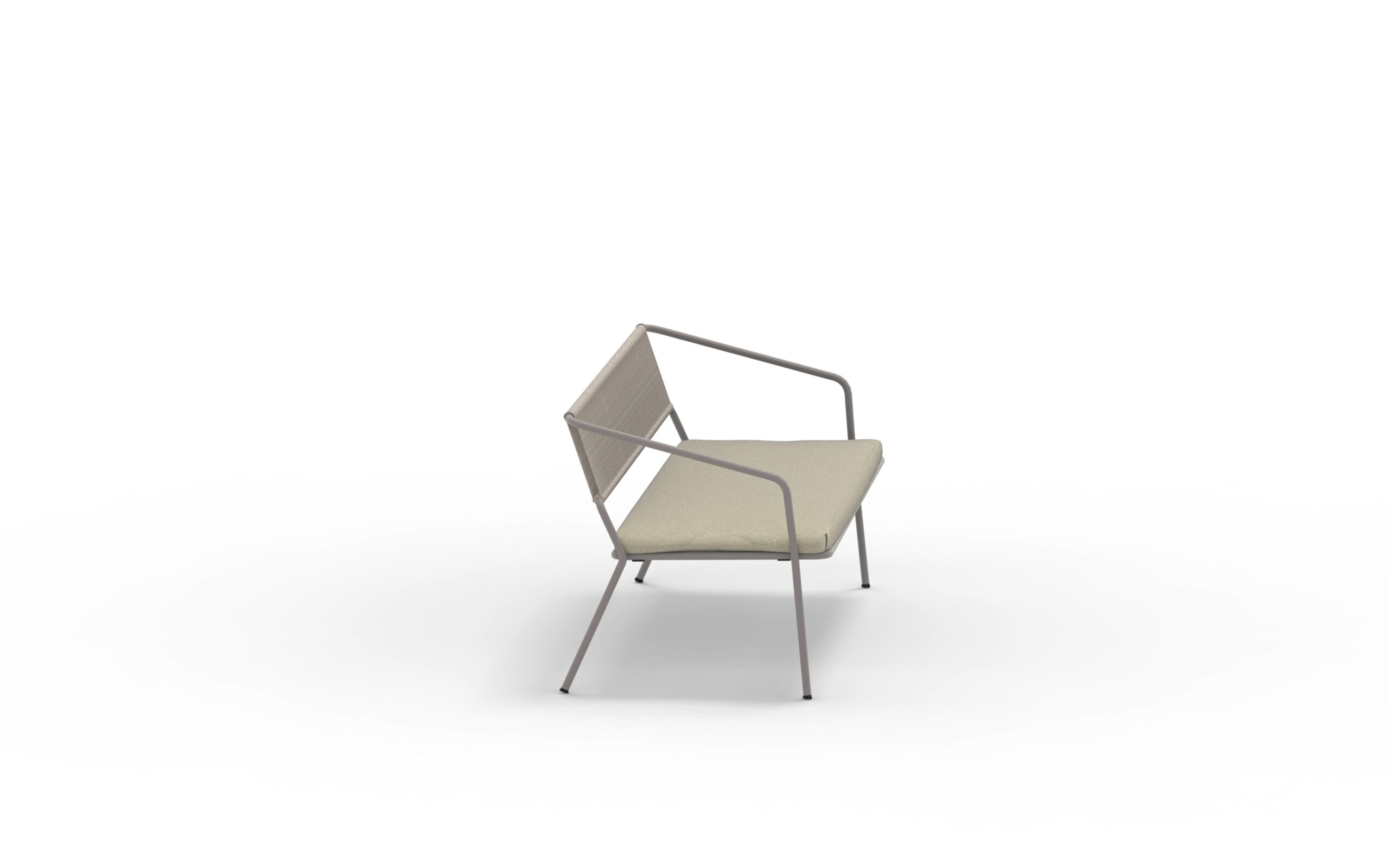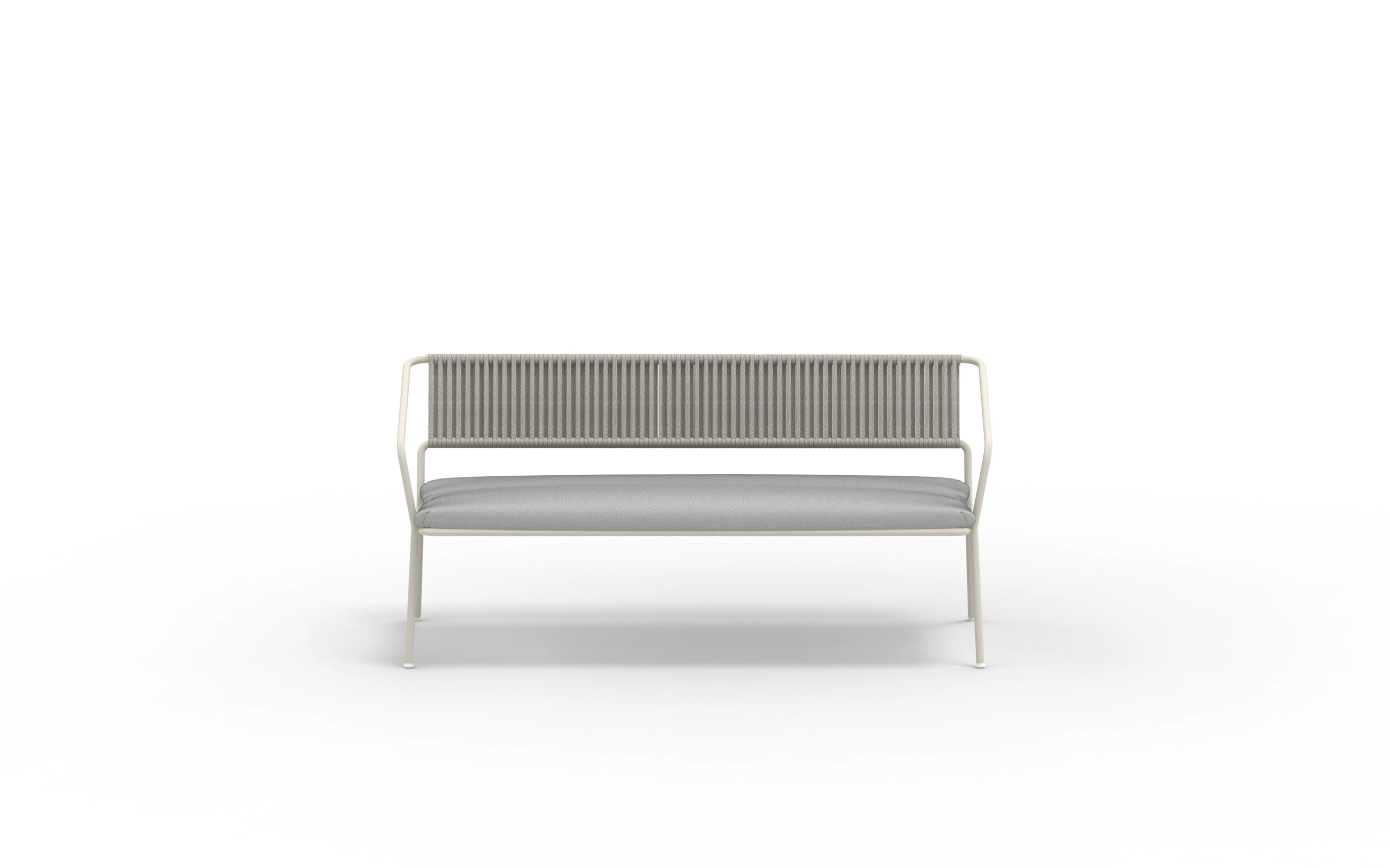 SLOT. Modern möbelserie i galvaniserat och lackat stål. Rygg flätad i vädertåligt rep. I serien finns karmstol, barstol, loungefåtölj och loungesoffa.