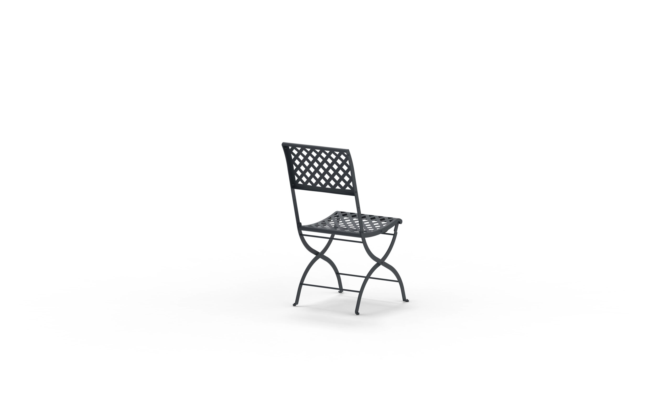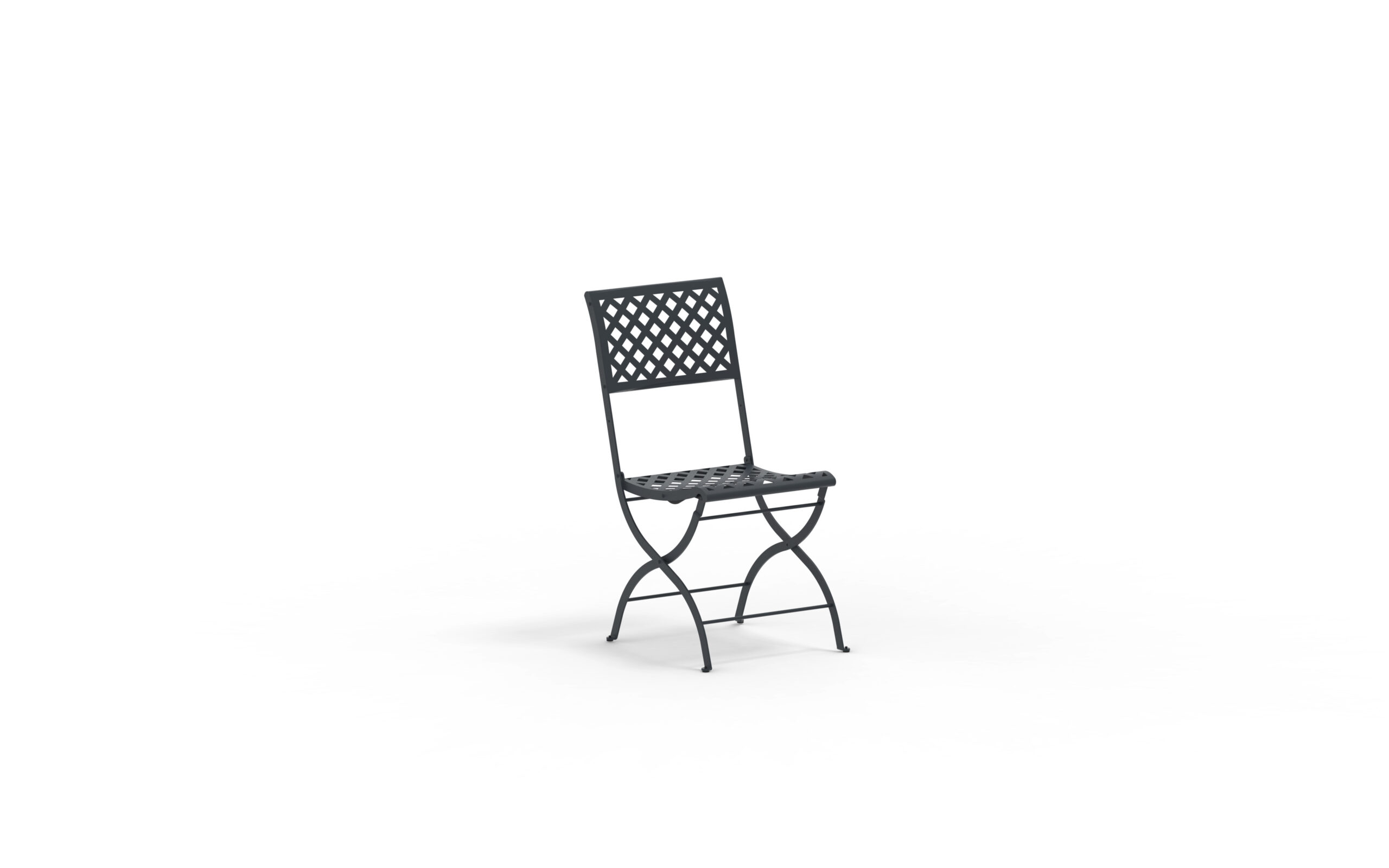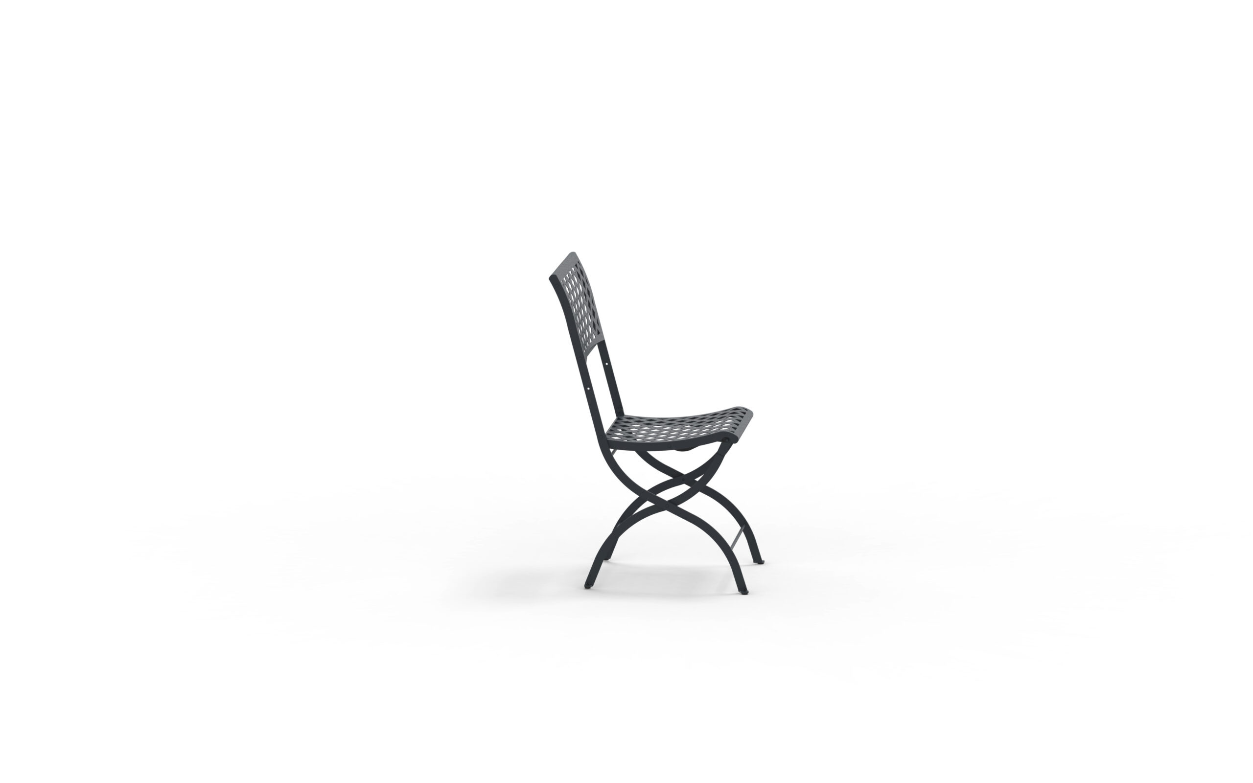 Fällbar stol i klassisk design, tillverkas i galvaniserat och lackat stål. Tillval: sittdyna