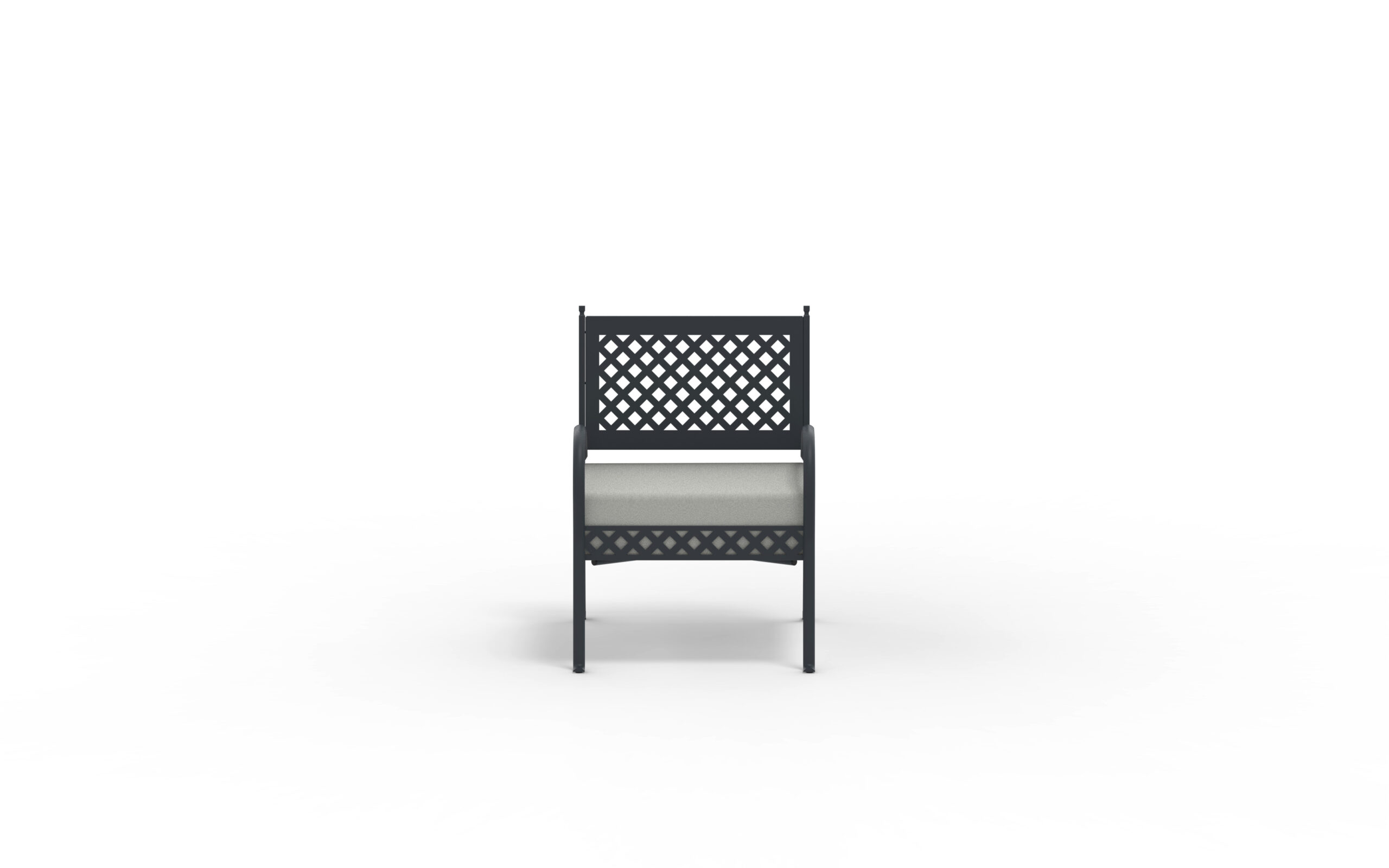 Loungefåtölj i klassisk smidesstil, tillverkas i galvaniserat och lackat stål. Pris inklusive sittdyna.