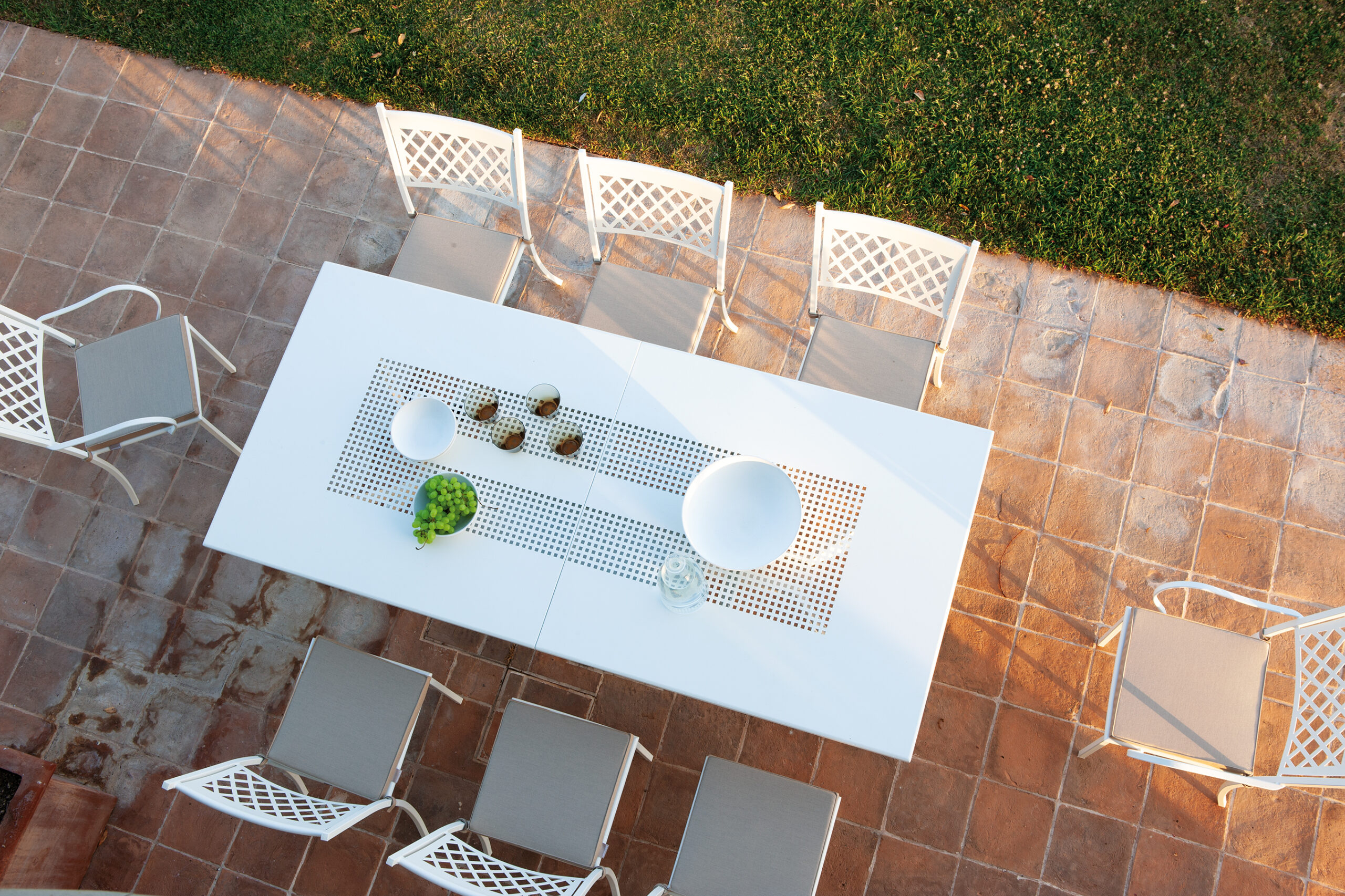 Karmstol i klassisk smidesdesign, tillverkas i galvaniserat och lackat stål. Karmhöjd 67,5cm. Stapelbar. Tillval: sittdyna