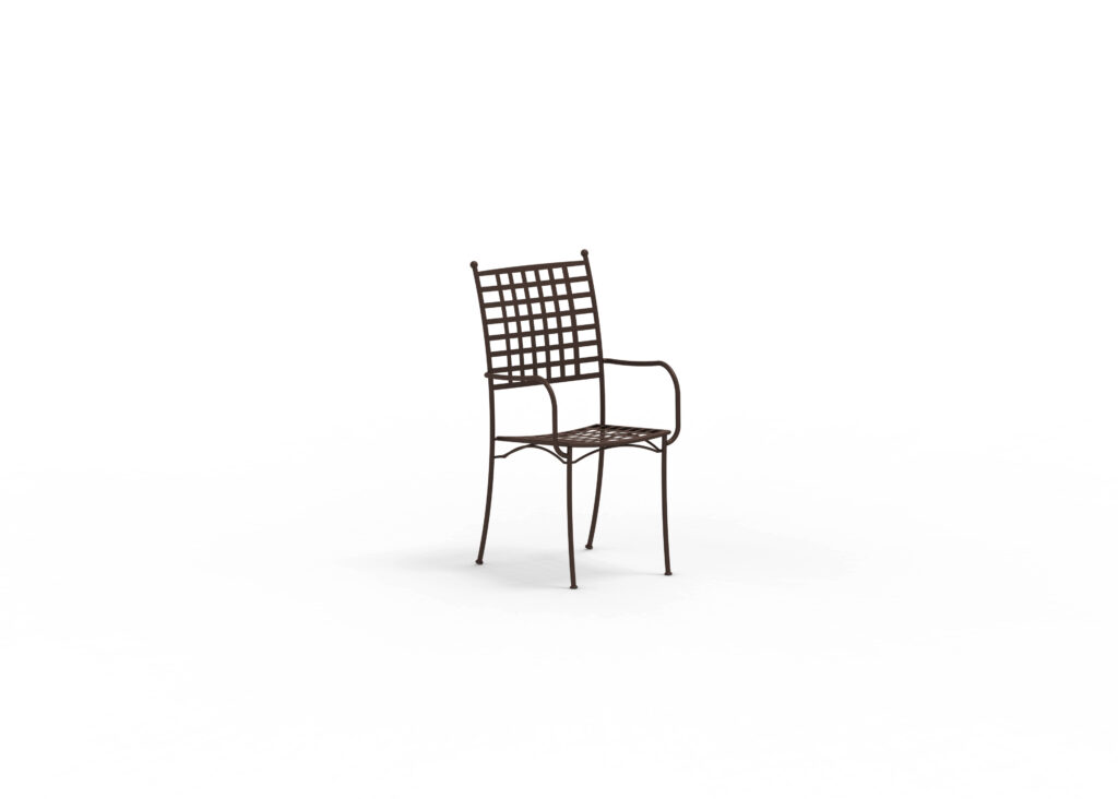 Stol i klassisk smidesdesign, tillverkas i galvaniserat och lackat stål. Stapelbar. Tillval: sittdyna