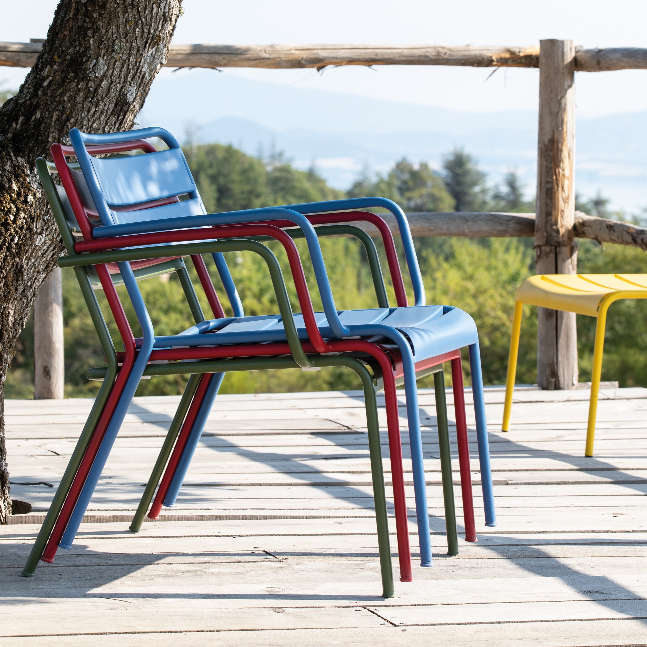 Stapelbar loungefåtölj i 16 färger. Karmhöjd 600mm. Galvaniserat och lackat stål. Tillval: sittdyna.