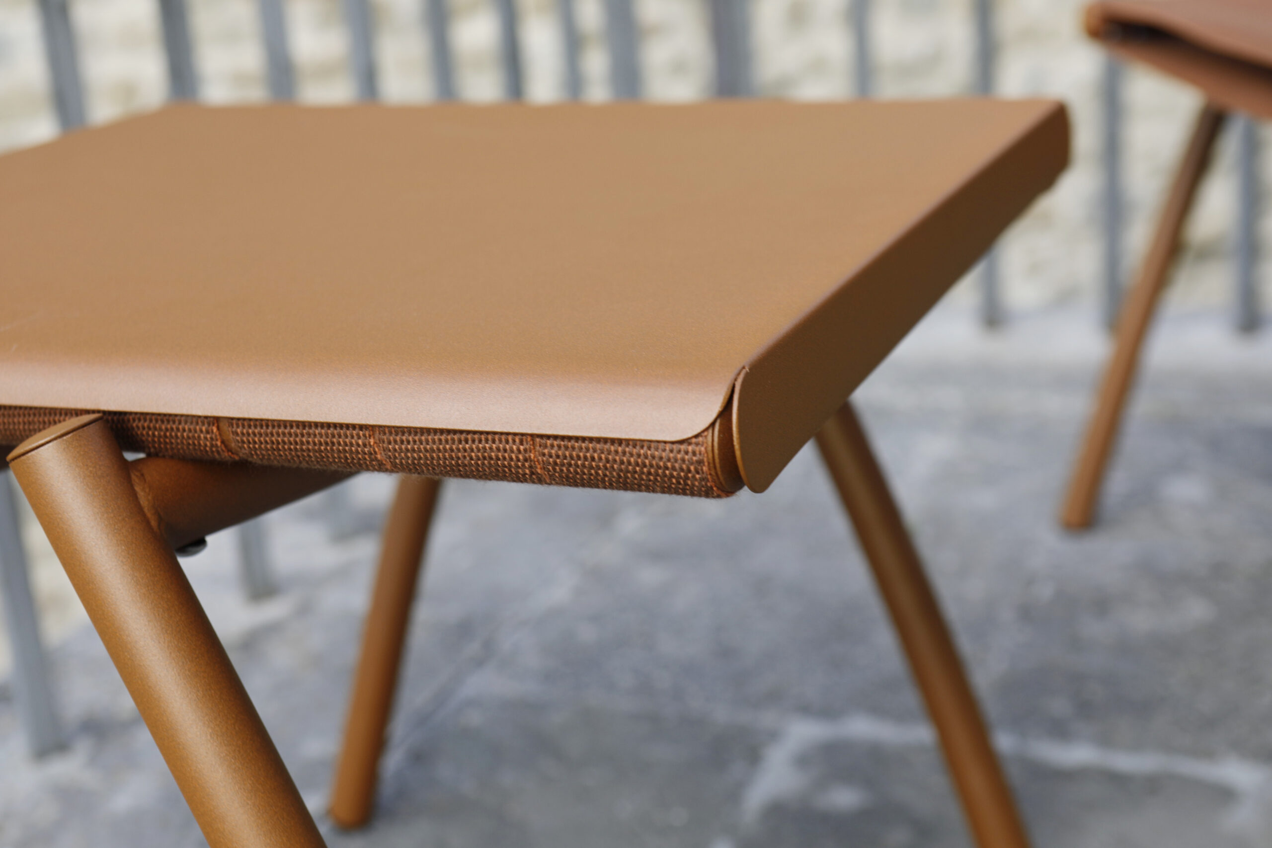 VOLÉE – modern exklusiv familj i design av Marcello Zillani. Stomme i galvaniserat och lackat stål, sits och rygg med snyggt flätade breda band. Banden är eleganta och slitstarka, tillverkade av massfärgad akryl och AT-polyester erbjuder de långvarig vattenavvisande effekt – perfekt för eleganta och hållbara utomhusutrymmen.
