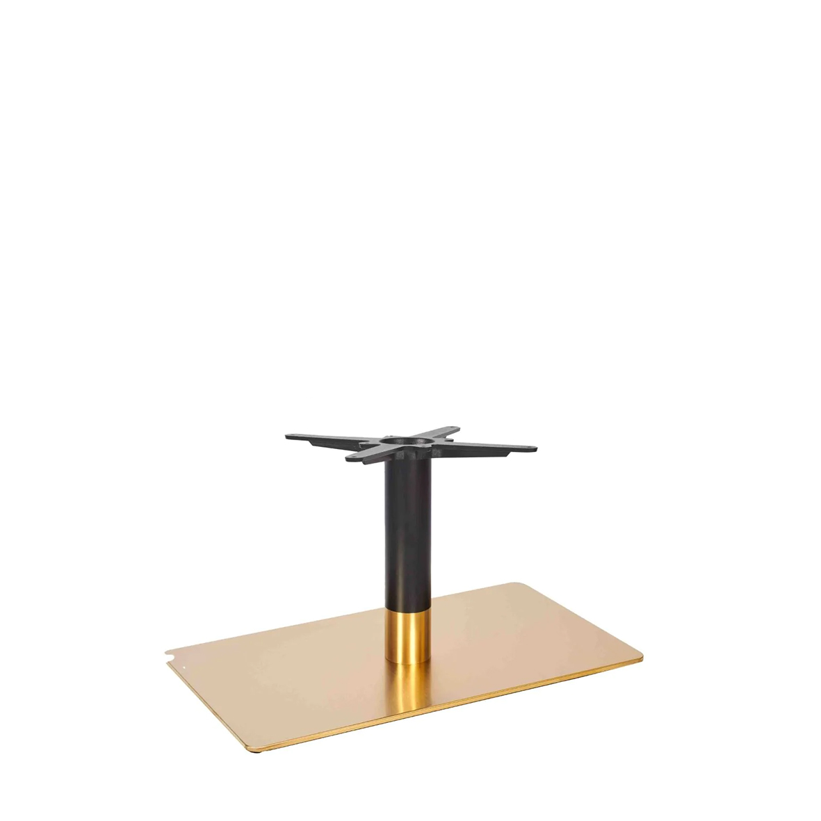 Bordsstativ ZEUS BRASS & BLACKS RECTANGULAR SINGLE med fot 40x70cm och en pelare. Tre standardhöjder (h.43-72-110cm). Utförande med fot & krage i borstad mässing (vintage brass) och svart pelare. Justerbara ställfötter som standard.